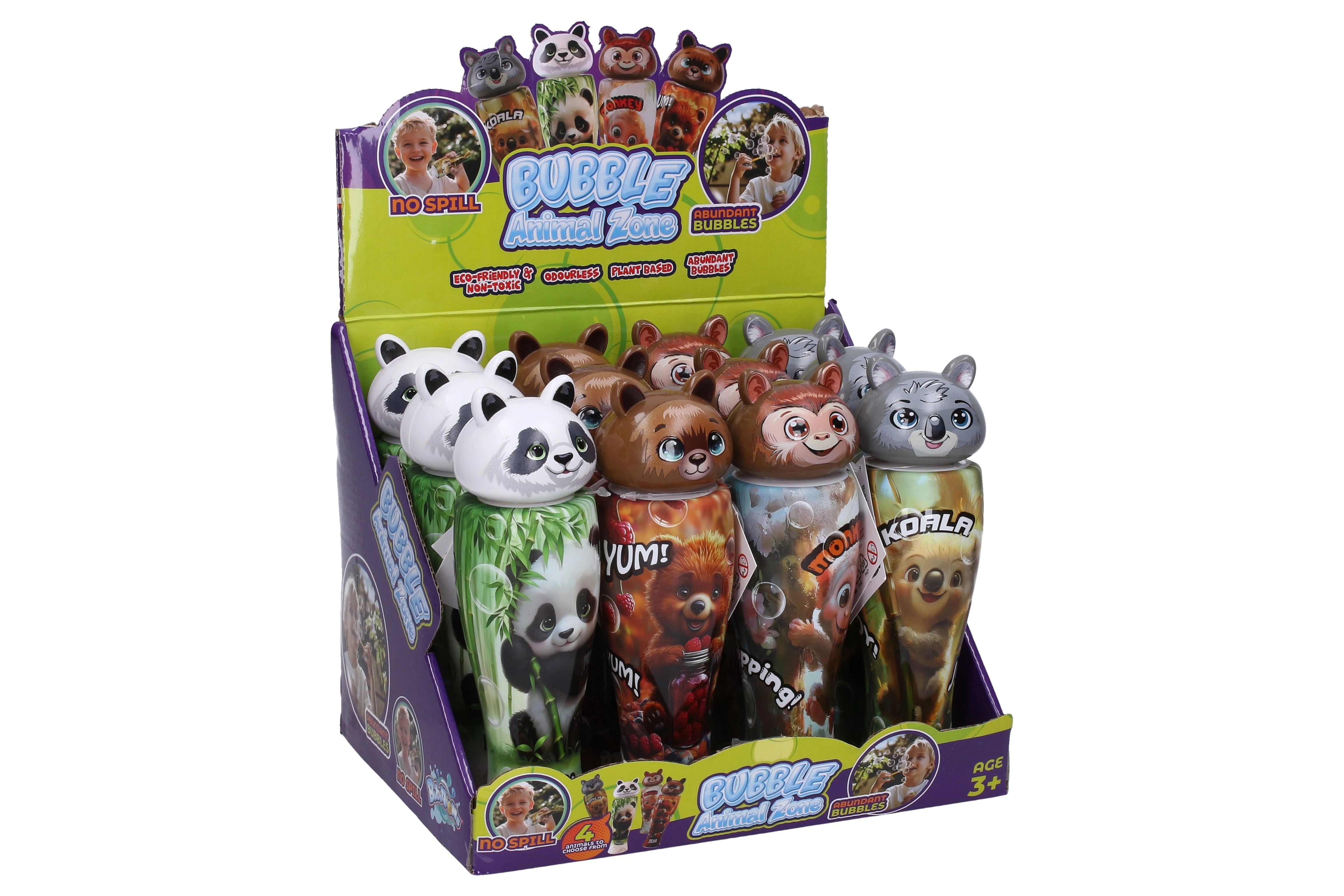 Sorgt für ausgelassene Kinderfreude mit dem Seifenblasenmacher mit Tierchen. Dank der praktischen 70-ml-Flasche entstehen viele schöne und langlebige Blasen. Die niedlichen Tiermotive wie Panda, Bär, Affe und Koala werden Kinder lieben und bei jeder Gelegenheit gern danach greifen.