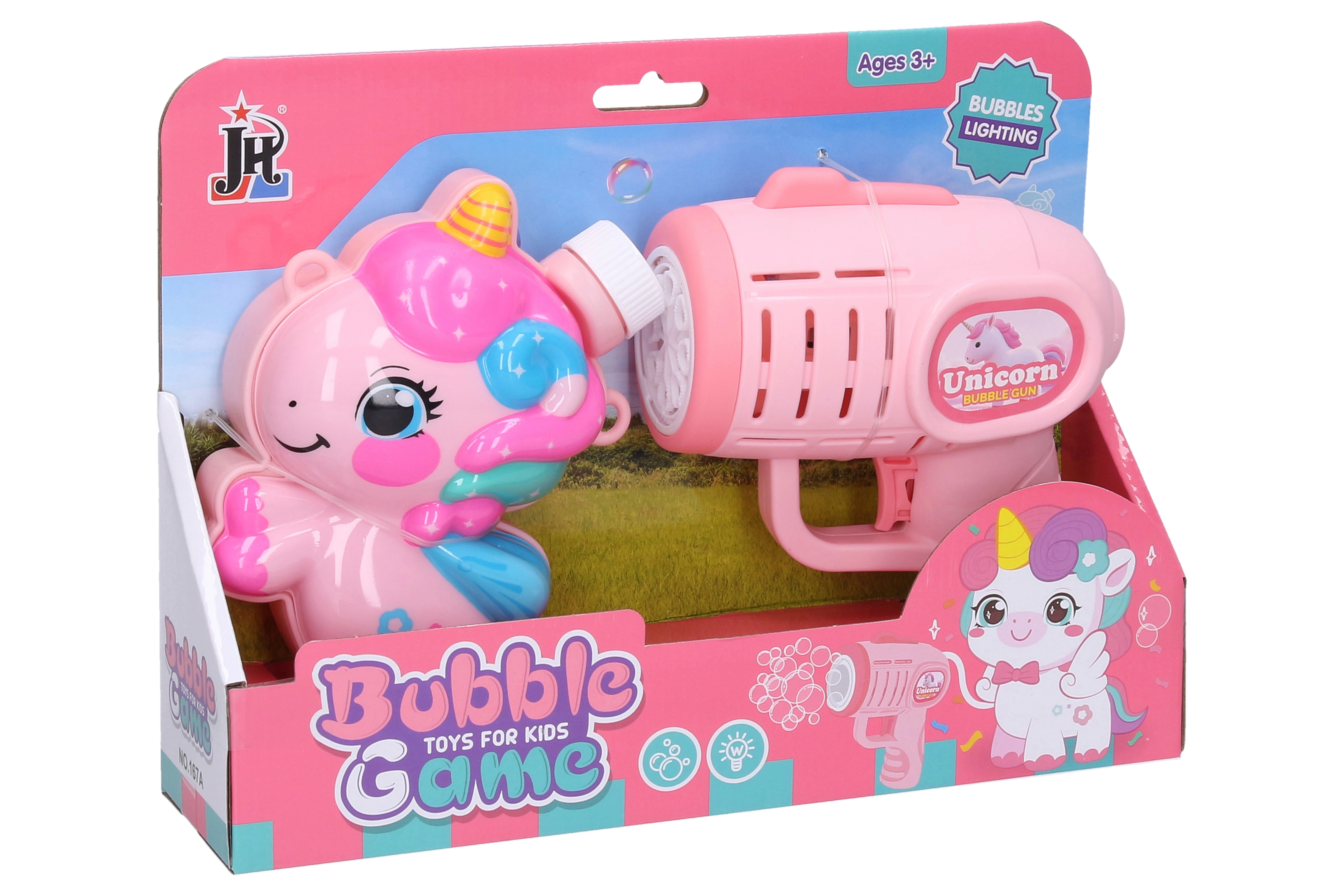 Diese Seifenblasen-Pistole mit Einhornmotiv ist ideal für Spiele im Freien, Feiern und Kinderpartys. Dank der externen Tankflasche für die Lösung und des Volumens von 280 ml sorgt sie für einen lang anhaltenden Blasenstrom ohne Unterbrechungen. Die leichte Konstruktion und der bequeme Griff garantieren auch für kleinere Kinder eine angenehme Bedienung.