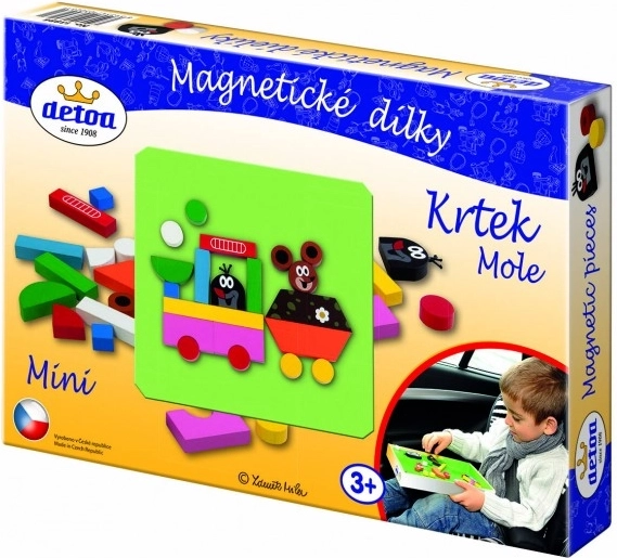 Entdecken Sie den Zauber eines klassischen tschechischen Spielzeugs mit den magnetischen Teilen von Detoa zum beliebten kleinen Maulwurf. Die Holzelemente sind mit Magnet hinterlegt und haften daher hervorragend auf Magnettafeln, am Kühlschrank oder anderen Metallflächen. Das Set ist ideal für freies Spiel, das Gestalten von Geschichten und die ersten kreativen Werke.