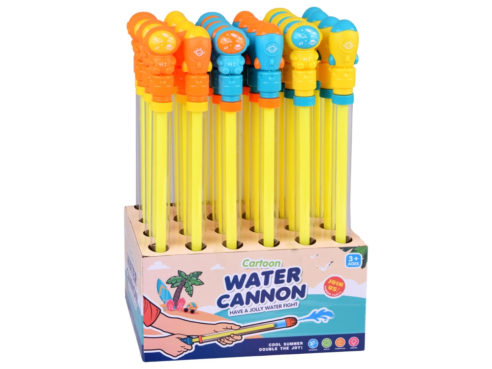 Die Wasserpistole im verspielten Weltraum-Look ist eine tolle Wahl für Sommerspiele unter freiem Himmel. Sie funktioniert wie eine klassische Wasserspritze – tauche die Spitze ins Wasser, ziehe den Griff heraus und drücke ihn anschließend wieder hinein für einen intensiven Wasserstrahl. Dank der leichten Kunststoffausführung und des ergonomischen Griffs liegt sie auch kleineren Kindern gut in der Hand.