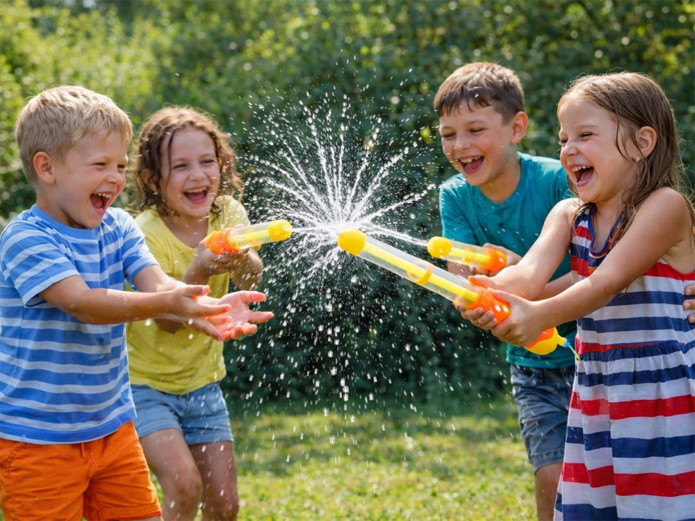 Perfekt für Wasserschlachten im Garten, am See oder in den Ferien. Beim Spielen rennen, decken und zielen die Kinder und fördern dabei ganz natürlich ihre Koordination, Reaktionsfähigkeit und körperliche Fitness.