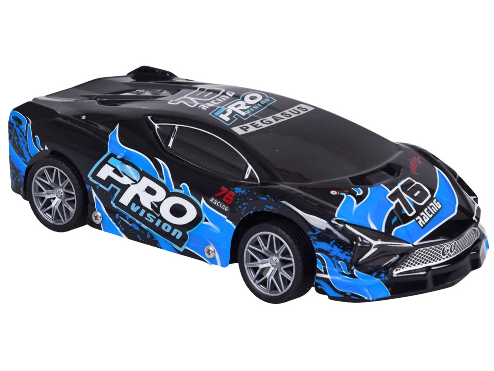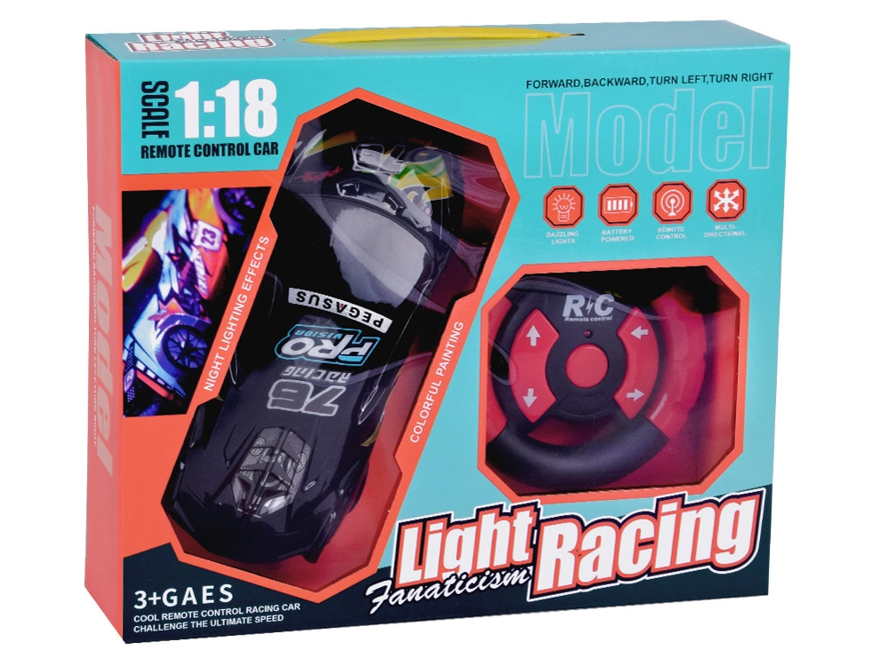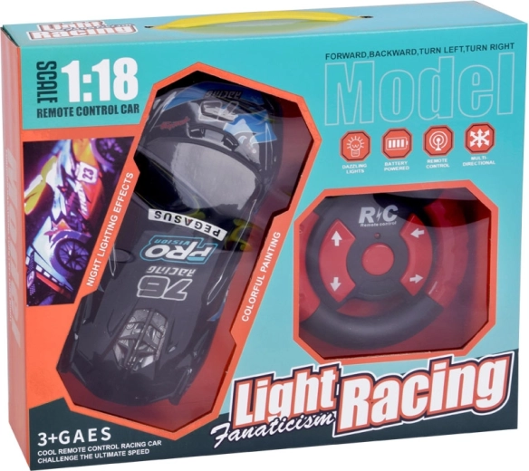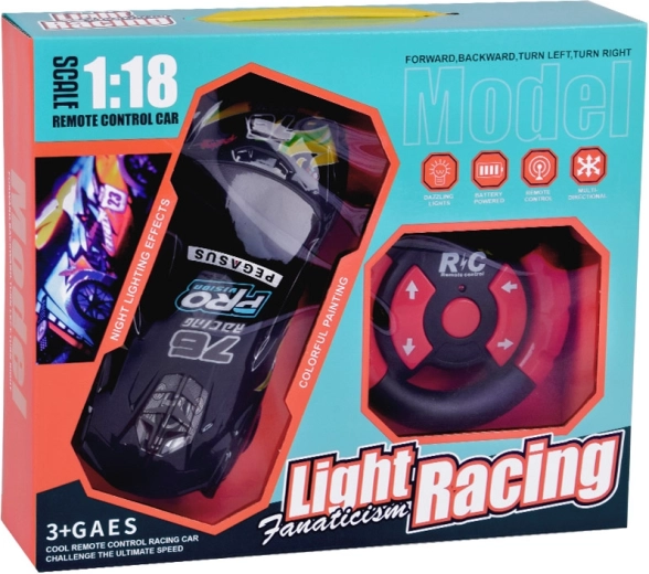 Genießen Sie rasanten Spaß mit diesem unterhaltsamen RC-Auto im Maßstab 1:18. Leichte und robuste Konstruktion, Gummireifen für guten Grip und ein intuitiver Controller sorgen für sanftes Handling. Während der Fahrt leuchtet die Karosserie effektvoll auf und blinkt, sodass das Auto auch in der Dämmerung großartig aussieht. Im Lieferumfang enthalten sind ein 3,7-V-Akku und ein USB-Kabel zum bequemen Aufladen.