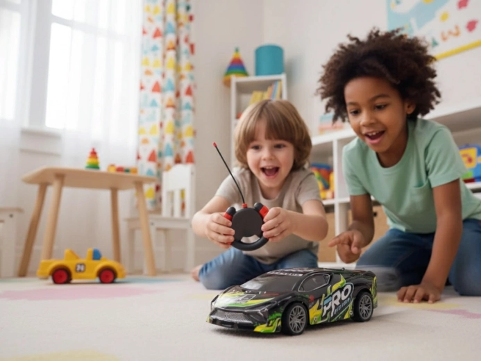 Die Steuerung ist dank des komfortablen, runden Controllers mit automatischem Pairing einfach. Sie können vorwärts und rückwärts fahren sowie rechts und links lenken – so gelingen feine Manöver und schnelle Sprints. Ideal für Zuhause, Kinder-Rennstrecken und als kreatives Geschenk.