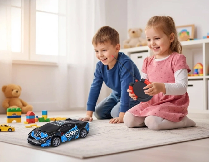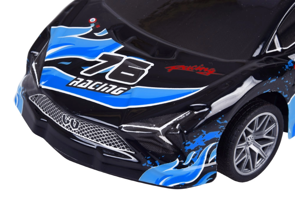 Der RC-Sportwagen bietet dank Gummireifen und einem leichten, robusten Chassis dynamisches Fahren auf verschiedenen Untergründen. Die einstellbare Spur unterstützt eine präzise Linienführung und mehr Stabilität. Die beleuchtete Karosserie mit effektvollem Blinken verleiht jedem Rennen einen attraktiven Look.