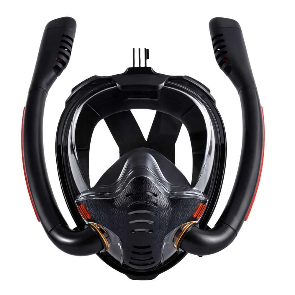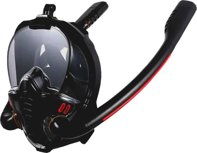 Diese moderne Vollgesichtsmaske zum Schnorcheln vereint Komfort, Sicherheit und klare Sicht unter Wasser. Die Konstruktion mit integrierter Atemkammer ermöglicht natürliches Atmen durch Nase und Mund, sodass Sie auf ein unbequemes Mundstück verzichten können. Das weite 180°-Sichtfeld liefert einen beeindruckenden Panoramablick auf die Unterwasserwelt.
