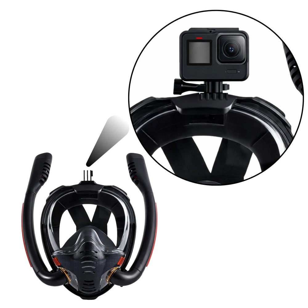 Halten Sie Ihre Abenteuer mit der oberen Halterung für eine Action-Kamera fest. Klappbare Schnorchel erleichtern das Packen, den Transport und die Aufbewahrung.