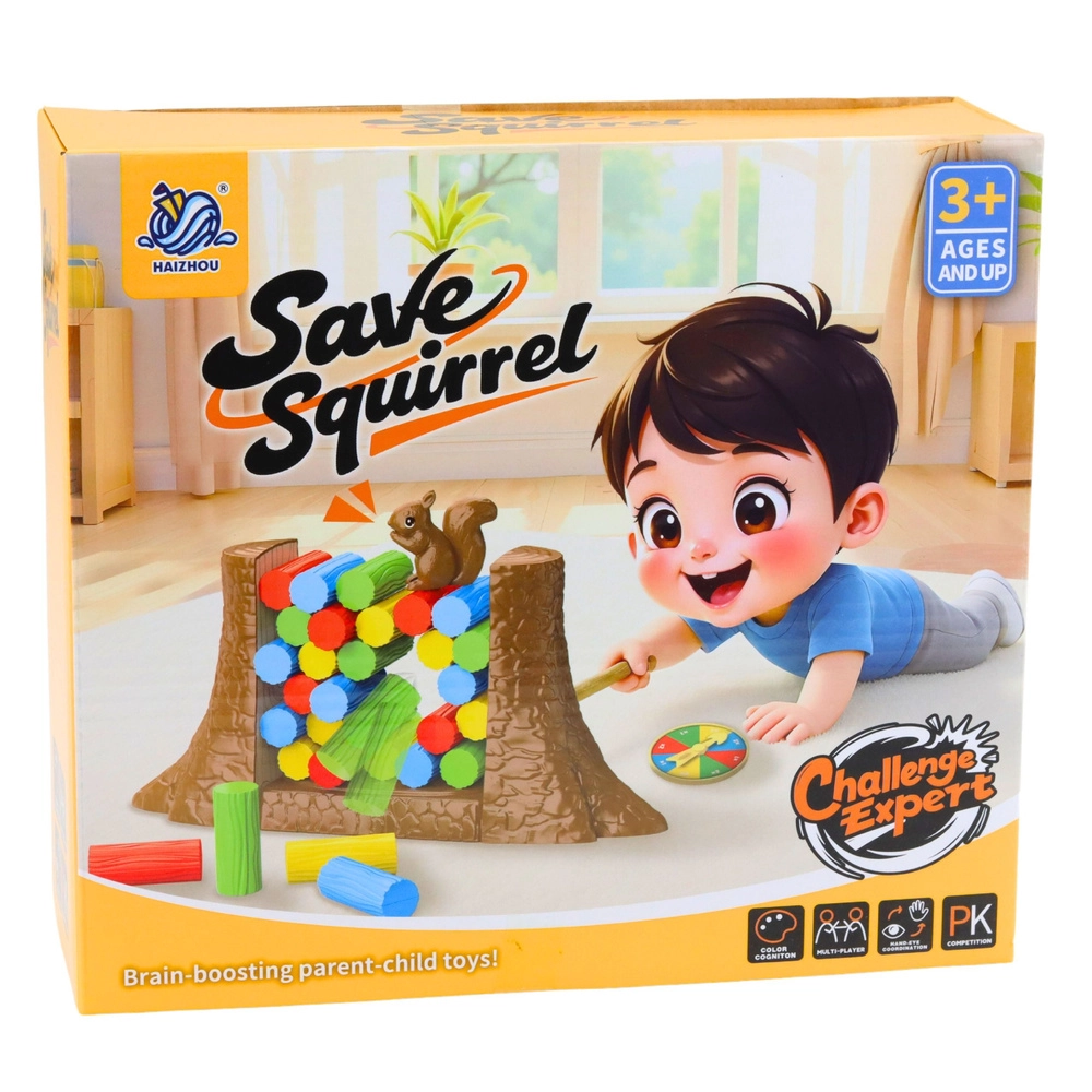 Baue ein stabiles „Nest“ aus bunten Stäbchen, setze das niedliche Eichhörnchen obenauf und drehe den Spinner, der die Farbe des zu ziehenden Stäbchens bestimmt. Jeder Zug erfordert Geschick und Strategie – ziehe das richtige Stäbchen und halte das Eichhörnchen sicher!