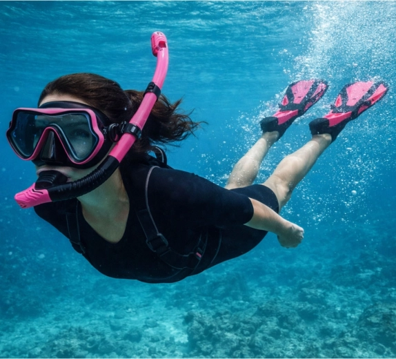 Genießen Sie klare Sicht und einen gleichmäßigen Vortrieb bei jedem Kick. Die Flossen mit belüftetem Blatt unterstützen effizienten Antrieb und geringere Beinermüdung, die Maske bietet ein weites Sichtfeld und eine komfortable Abdichtung, während der Schnorchel mit Spritzwasserschutz ein natürliches Atmen an der Oberfläche ermöglicht.