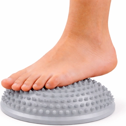 Regelmäßige Anwendung unterstützt eine aufrechte Körperhaltung, hilft bei der Therapie von Plattfüßen und kann Muskelverspannungen reduzieren. Die Halbkugel besteht aus einem strapazierfähigen, elastischen Material, das die Form gut hält und Sicherheit beim Stehen sowie bei dynamischen Übungen bietet.