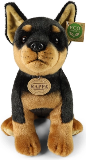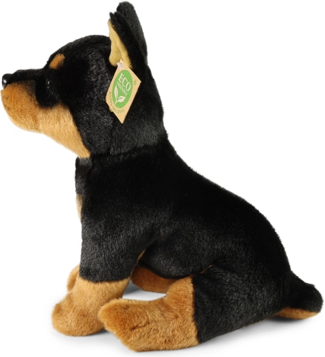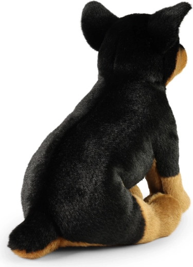 Authentische Färbung, schön geformte Schnauze und ausdrucksstarke Augen verleihen dem Plüsch-Dobermann einen realistischen Ausdruck, den man auf den ersten Blick liebt.