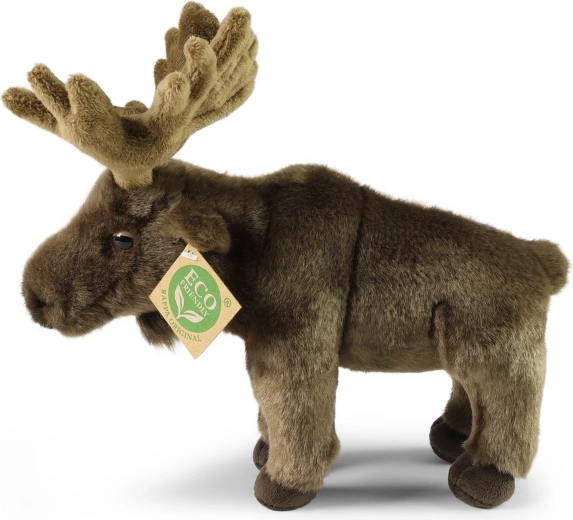 Dieser Plüsch-Elch ist ein toller Begleiter zum Kuscheln und für fantasievolle Spiele. Realistische Details wie geformte Geweihe, gestickte Augen und weiches Fell machen ihn zu einem attraktiven Spielzeug und einer stilvollen Deko für das Kinderzimmer. Die schonende Herstellung und die recycelte Füllung unterstreichen seine Umweltfreundlichkeit.