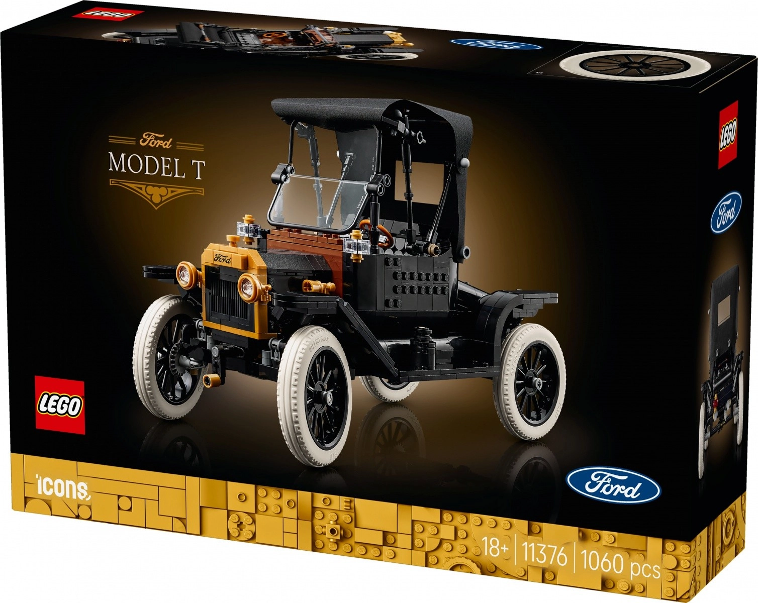 Die schwarze Karosserie mit goldenen Akzenten, schmale weiße Reifen auf Speichenrädern und eine klappbare Frontscheibe sind eine originalgetreue Hommage an den legendären FORD Model T.