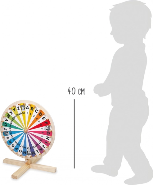 Das Holz-Glücksrad von small foot macht jede Aktivität zu einem spannenden Spiel. Dank Segmenten mit Buchstaben A–Z, Zahlen 1–30 und vier Jokern eignet es sich perfekt für Wortspiele, Lotterien, Lernaktivitäten und Familienspiele. Die farbige Gestaltung unterstützt die Orientierung und hält die Aufmerksamkeit der Kinder.