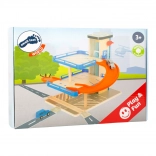 Im Set sind zwei Autos enthalten – es wird nichts weiter für den sofortigen Spielstart benötigt. Das Parkhaus lässt sich leicht um weiteres Zubehör erweitern und problemlos mit beliebten Holzeisenbahnen verbinden. Die Montage ist dank der beiliegenden bebilderten Anleitung einfach.
