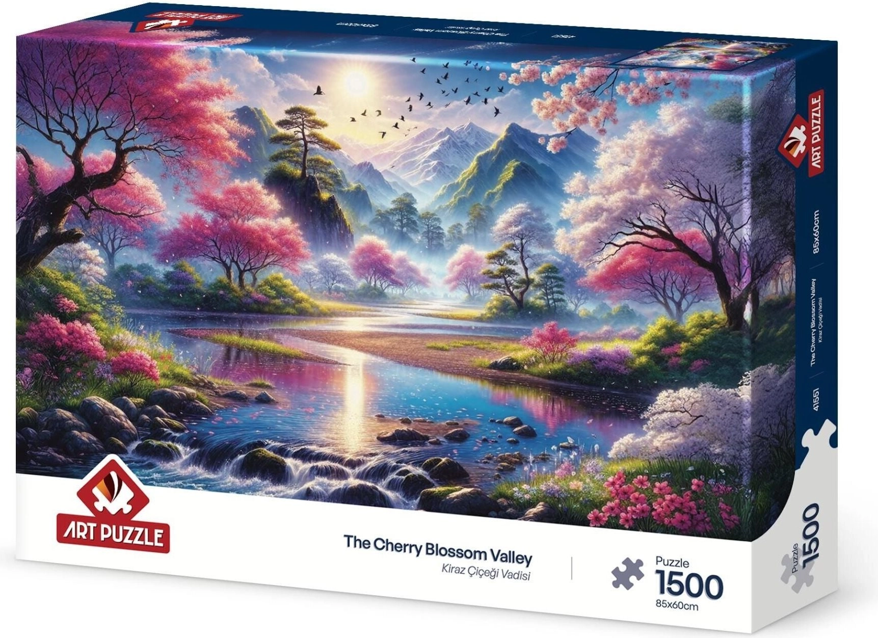 Entdecken Sie die Harmonie einer Frühlingsszenerie mit dem Motiv eines Teichs unter blühenden Kirschbäumen. Dieses 1500-teilige Puzzle ist ideal für Liebhaber detaillierter Illustrationen und entspannten Puzzelns. Präziser Stanzschnitt und hochwertiger Druck garantieren kräftige Farben und ein angenehmes Puzzle-Erlebnis.