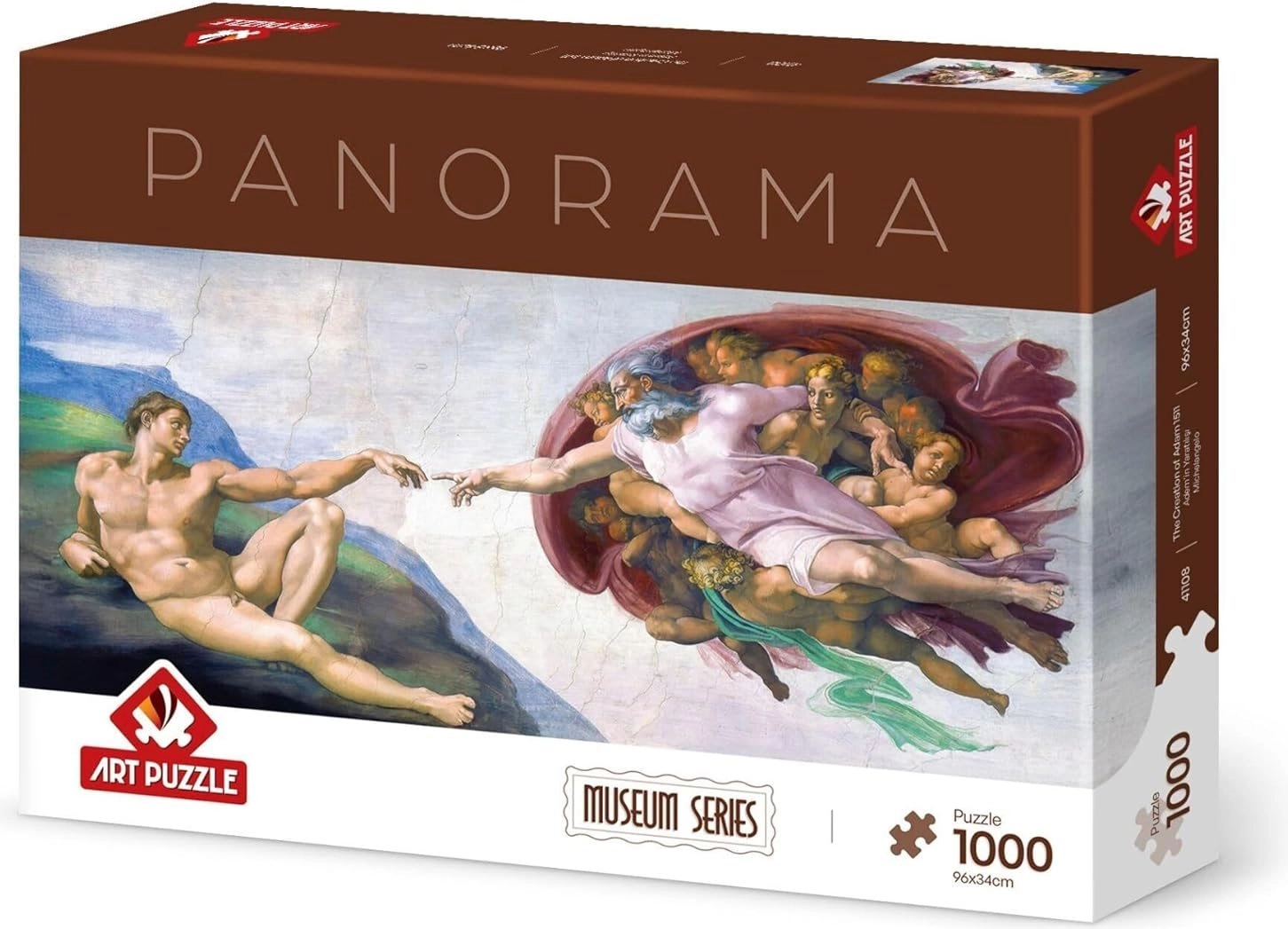 Das Panorama-Puzzle Die Erschaffung Adams bringt eine ikonische Renaissance-Szene in Ihr Zuhause. Dank des länglichen Formats kommt es im Regal oder gerahmt an der Wand wunderschön zur Geltung. Präzise gestanzte Teile sorgen für ein angenehmes Puzzelerlebnis und ein zufriedenstellendes Ergebnis.