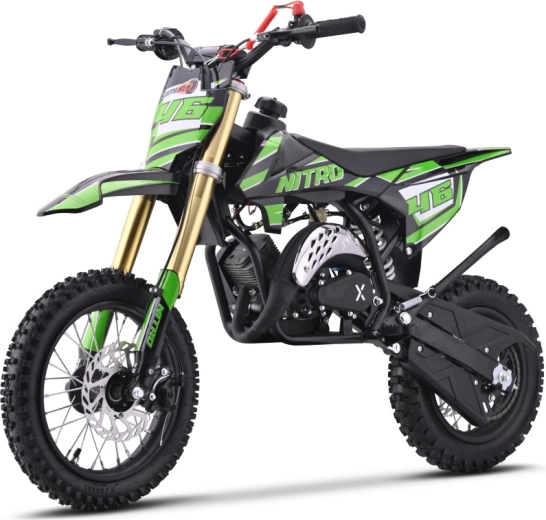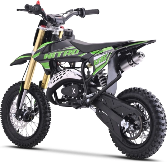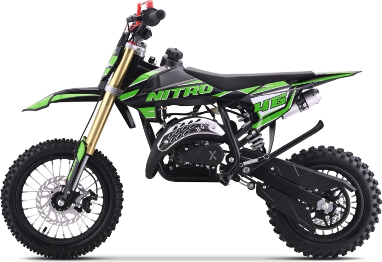 Das Minibike NITRO 60 cc ist die ideale Wahl für junge und einsteigende Offroad-Fahrer. Der robuste, pulverbeschichtete Rahmen und die verstärkte Schwinge erhöhen die Haltbarkeit, während der konische Luftfilter die Luftzufuhr für eine stabile Leistung verbessert. Für Sicherheit sorgt ein Not-Aus mit Reißleine – beim Herausziehen geht der Motor automatisch aus.