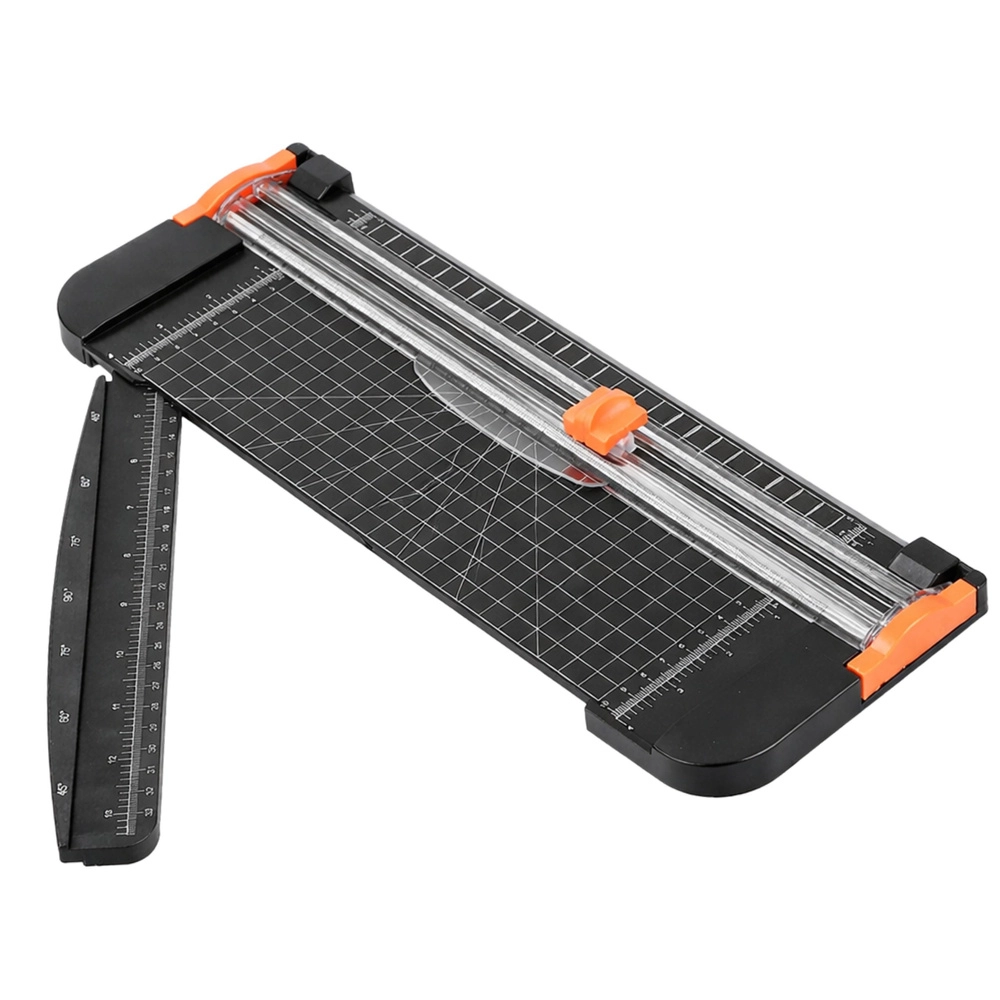 Dieser leichte und stabile Papierschneider ist für komfortables und präzises Schneiden bis zum Format A3 konzipiert. Die transparente Führungsschiene mit integriertem Schiebemesser aus SK5-Stahl schützt die Finger und sorgt für einen sauberen Zug. Messraster mit Skalen in cm und Zoll sowie ein Winkelmesser 45–90° erleichtern Ausrichtung und Winkelschnitte.