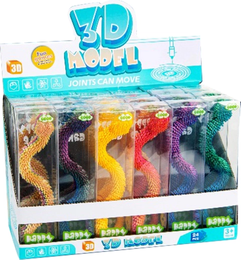 Entdecken Sie den Zauber kreativen Spielens mit der magischen 3D-Schlange im Viper-Stil. Die segmentierte Konstruktion ermöglicht fließendes Biegen und Formen, sodass Sie mühelos realistische Posen, Spiralen oder originelle Dekorationen erstellen. Die metallisch glänzende Oberfläche betont die Details und verleiht dem Spielzeug einen effektvollen Look.