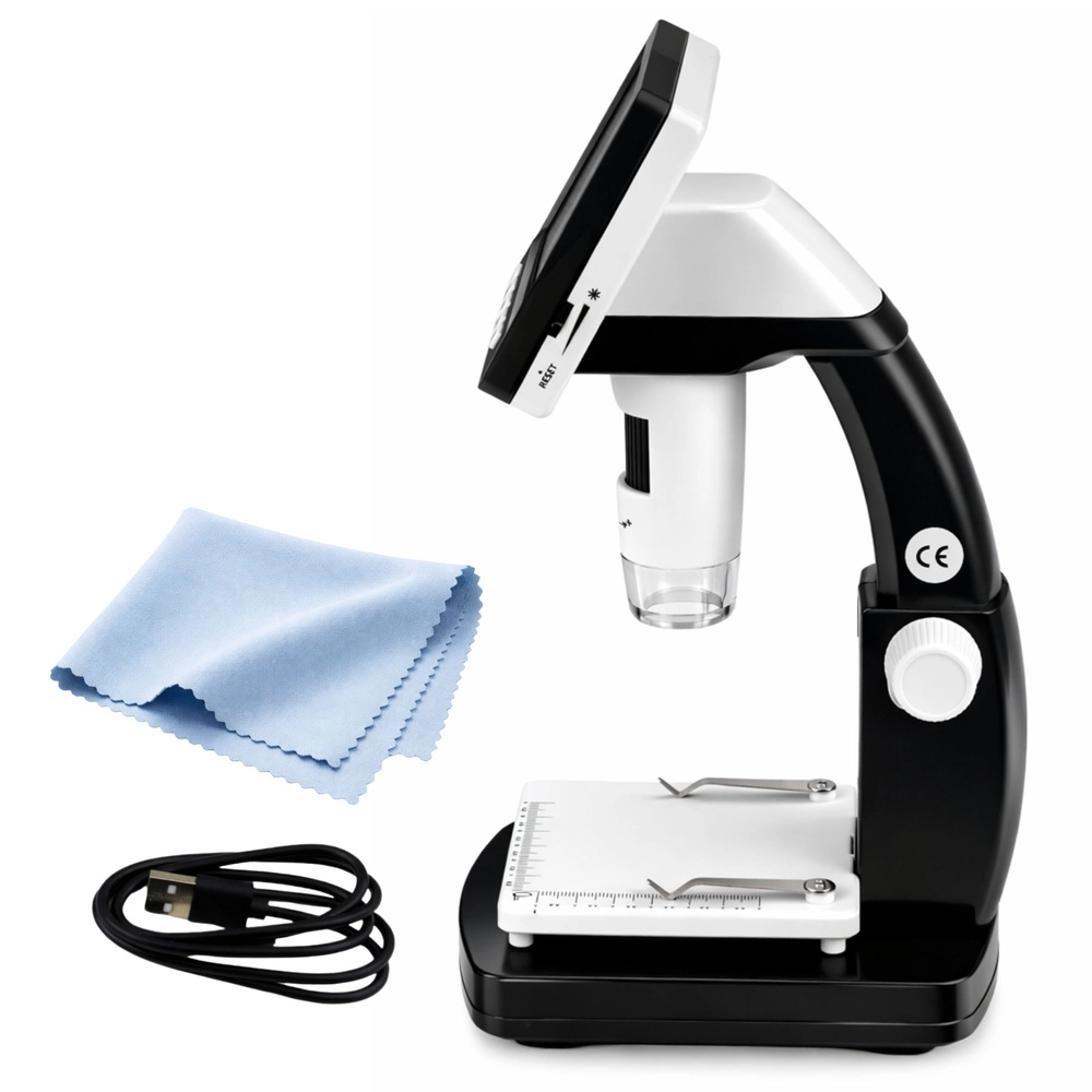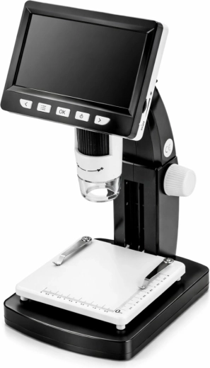 Entdecken Sie Details der Welt um Sie herum mit einem Digitalmikroskop, das ein brillantes 4,3"-IPS-Display, eine hohe Vergrößerung bis 1000× und präzises manuelles Fokussieren kombiniert. Dank 8 LEDs erkennen Sie feine Strukturen von Materialien, Elektronik oder biologischen Proben unter nahezu allen Bedingungen.