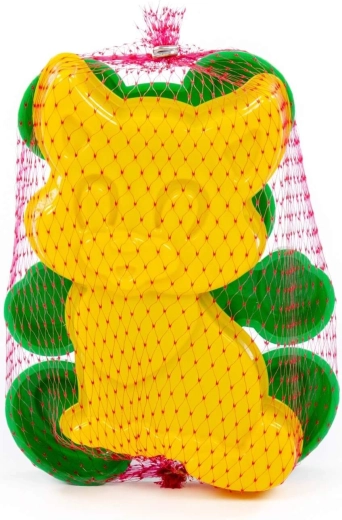 Das Set lässt sich leicht mit an den Strand oder in den Sandkasten nehmen. Es wird im Netzbeutel und in einer zufälligen Farbvariante geliefert.