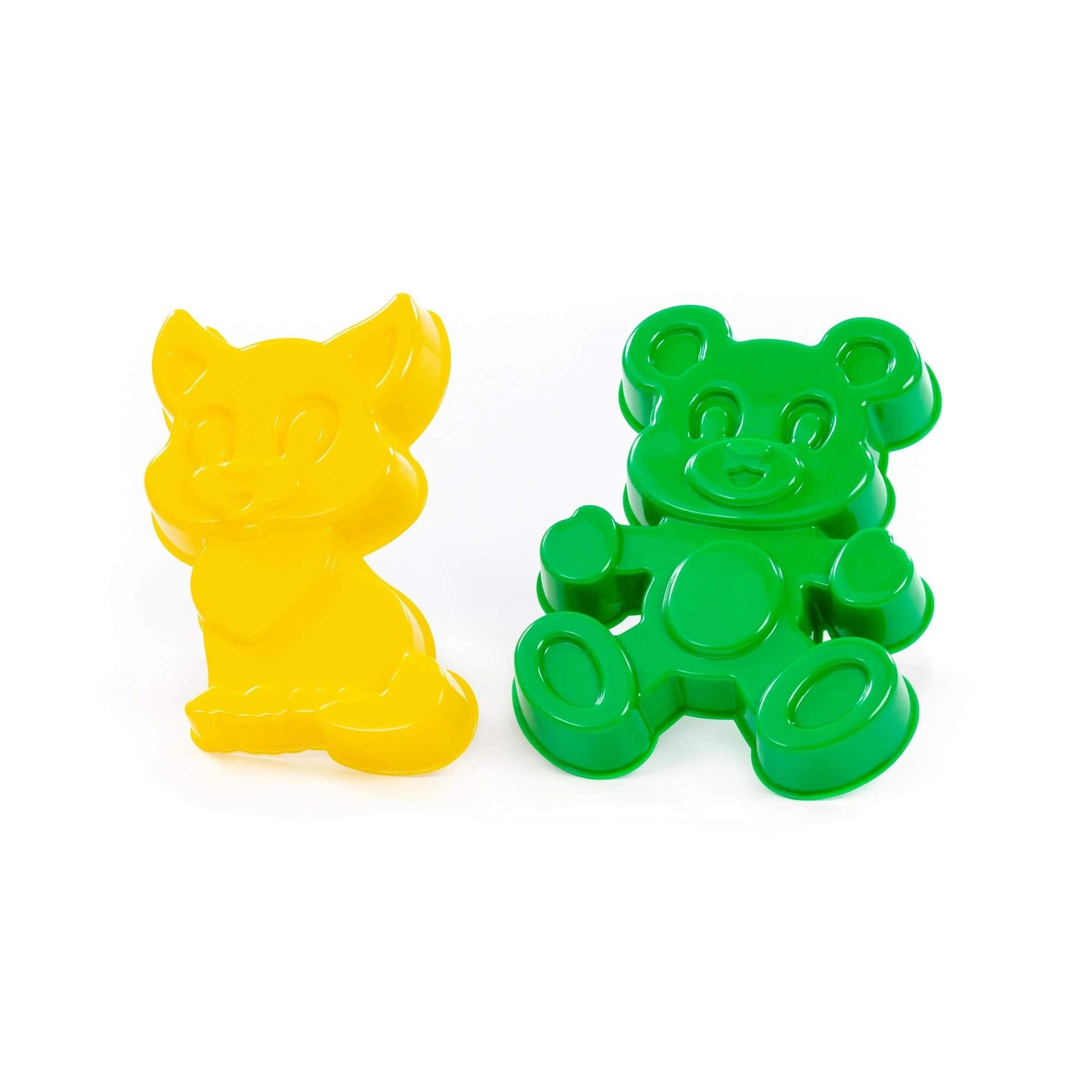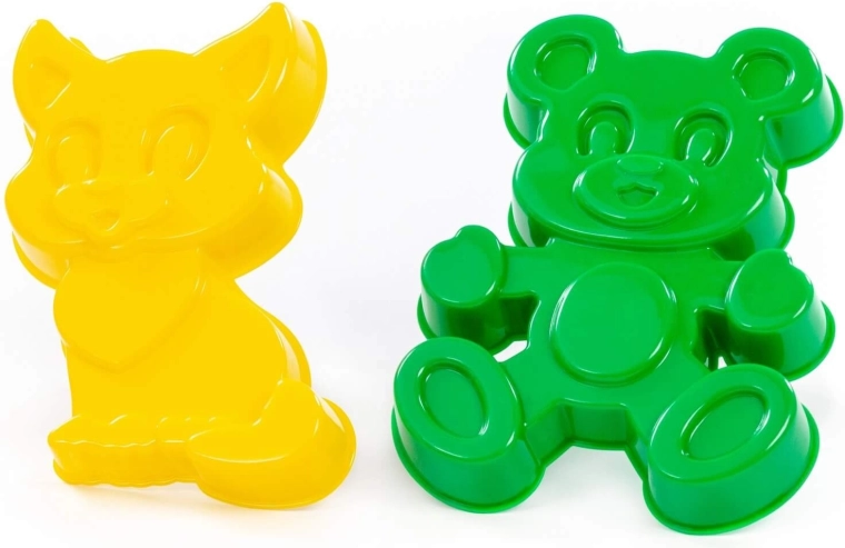 Das Set aus Kunststoffformen in Form eines Kätzchens und eines Bären ist ideal zum Spielen im Sandkasten und am Meer. Dank der betonten Konturen erzeugen die Formen saubere und gut lesbare Abdrücke, die Kinder mühelos schaffen.