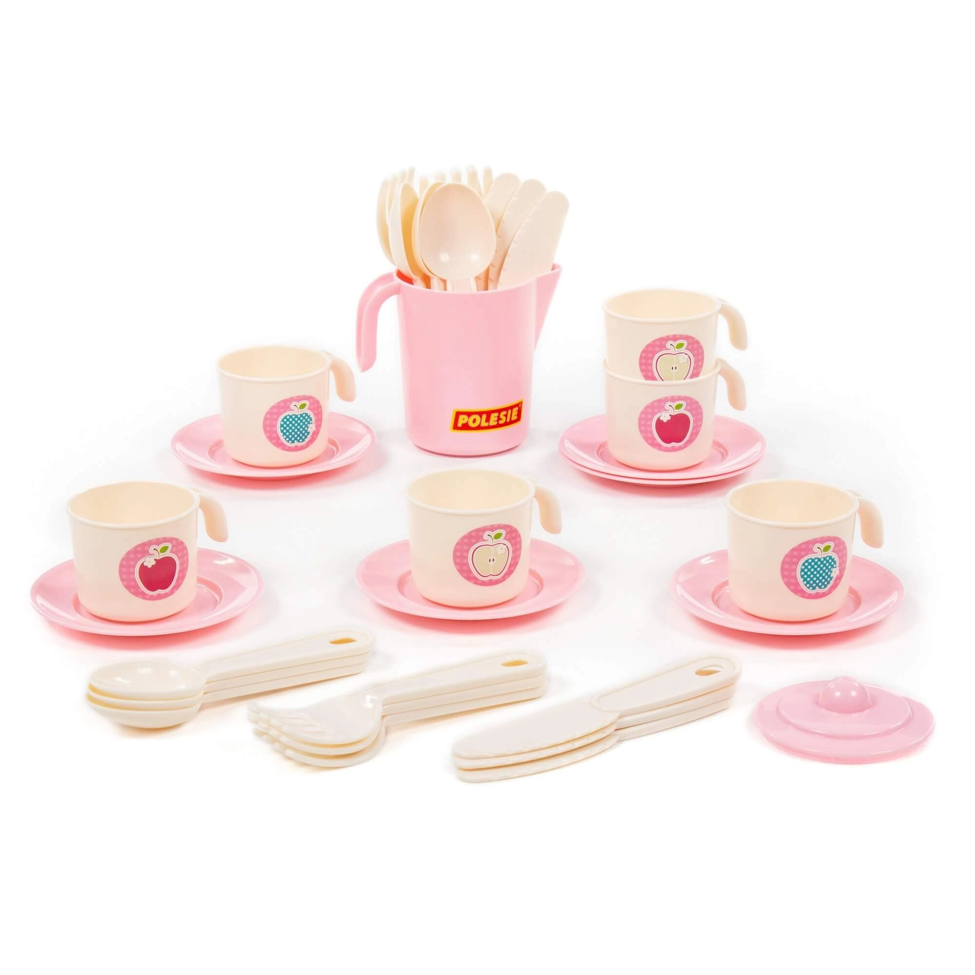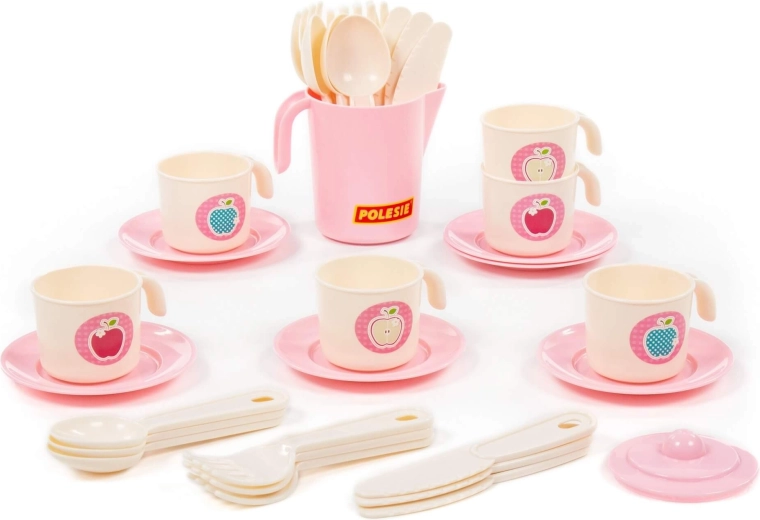 Das 32-teilige Set umfasst Tassen mit Untertassen, Teller, Besteck und eine Teekanne – Kinder haben alles, was sie zum Servieren von Getränken und Leckereien brauchen.