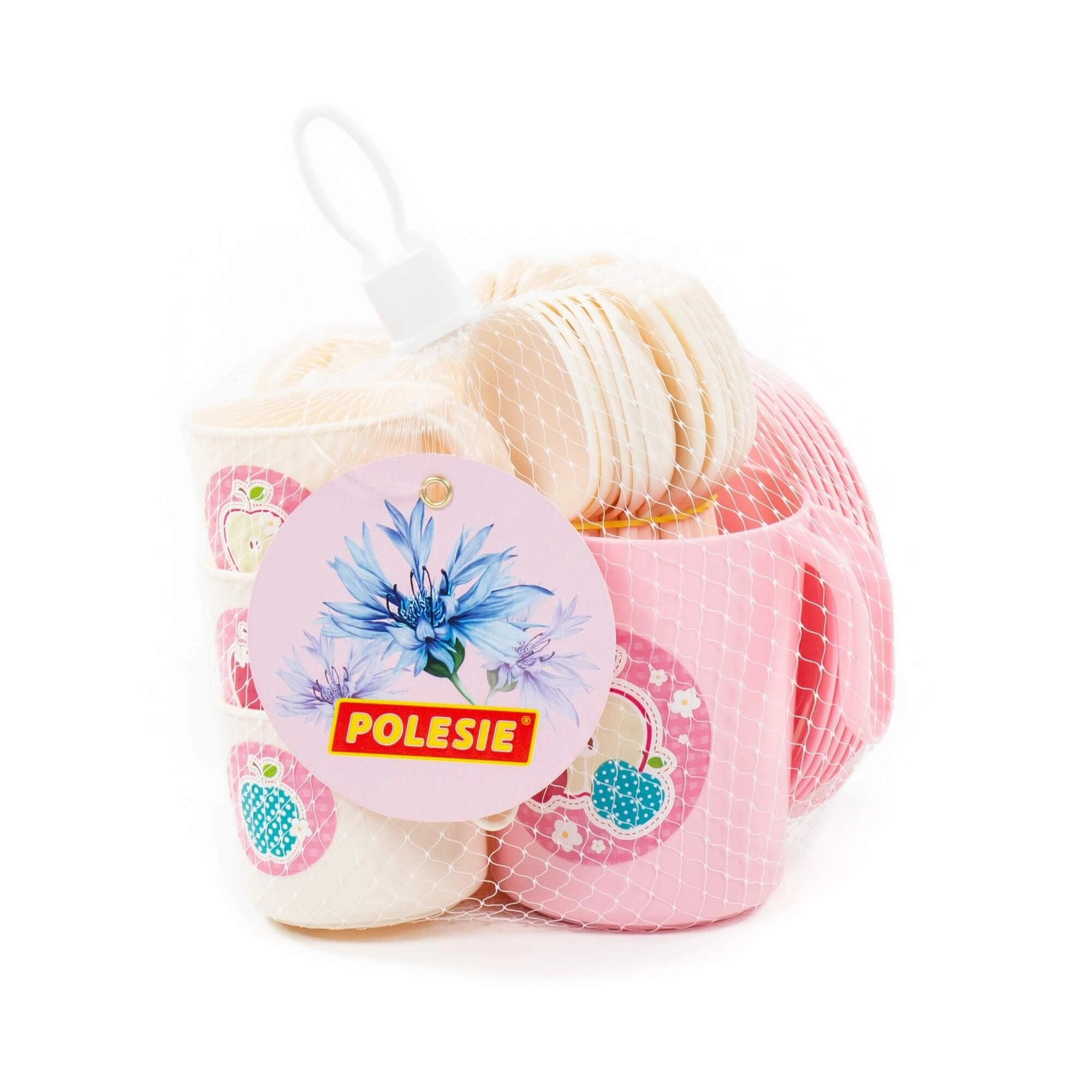 Das Set ist in einem praktischen Netzbeutel mit Etikett verpackt, wodurch es sich leicht verstauen und zu Besuchen oder nach draußen mitnehmen lässt.