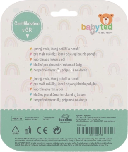 Das sanfte Rasseln stimuliert das Hörvermögen und weckt natürliche Neugier. Der texturierte Ring sorgt für einen sicheren Griff selbst für die kleinsten Hände, und die glatten Flächen lassen sich leicht reinigen. Praktisch, langlebig und ideal für den täglichen Einsatz zu Hause und unterwegs.