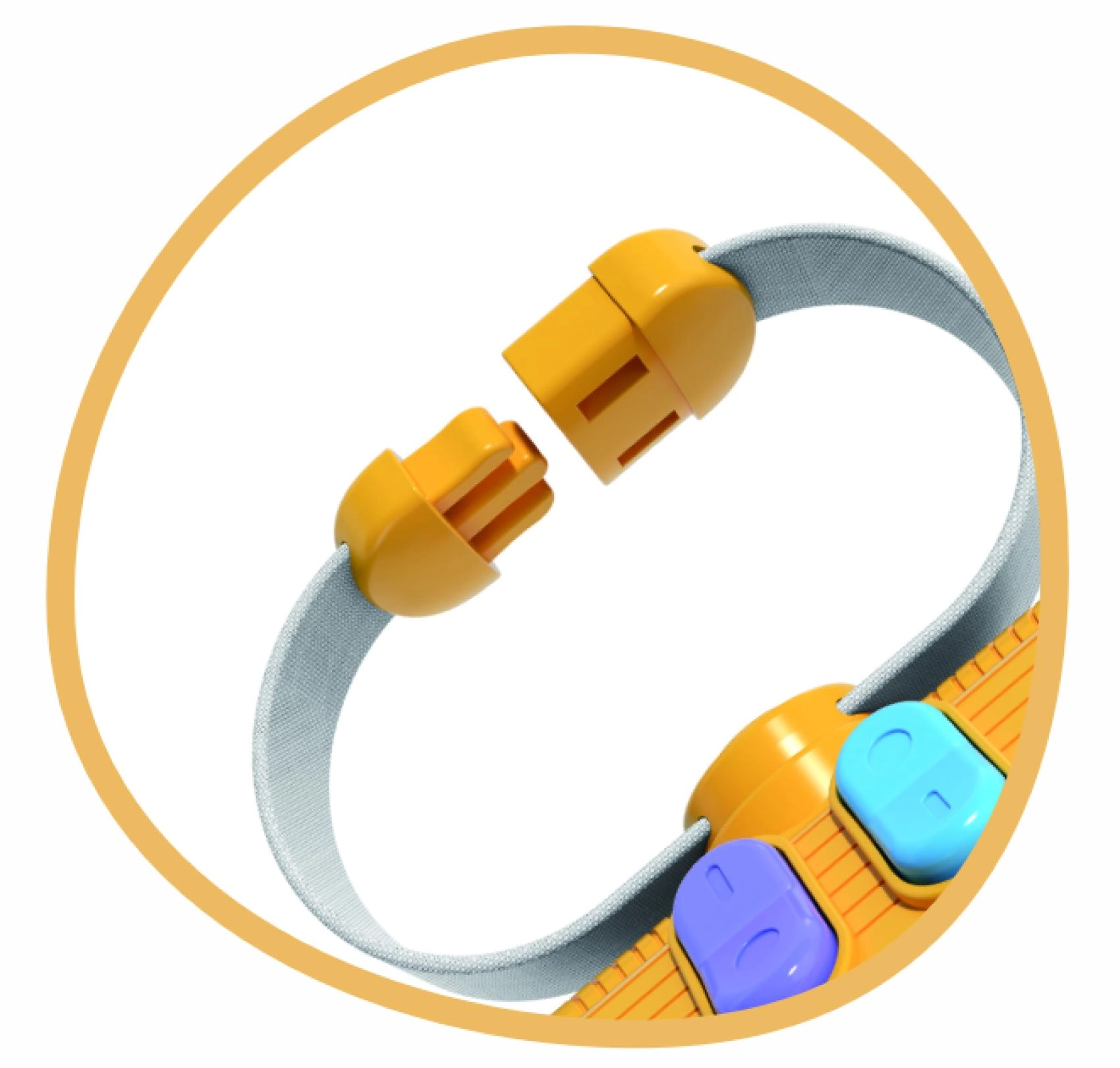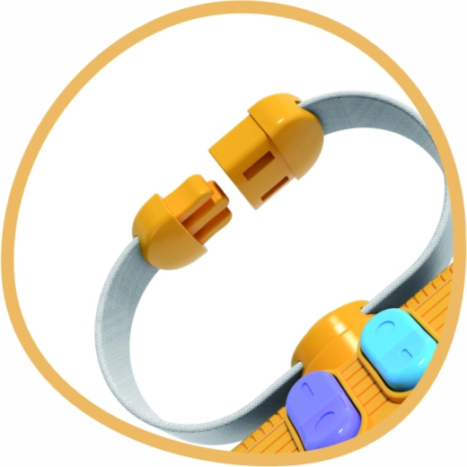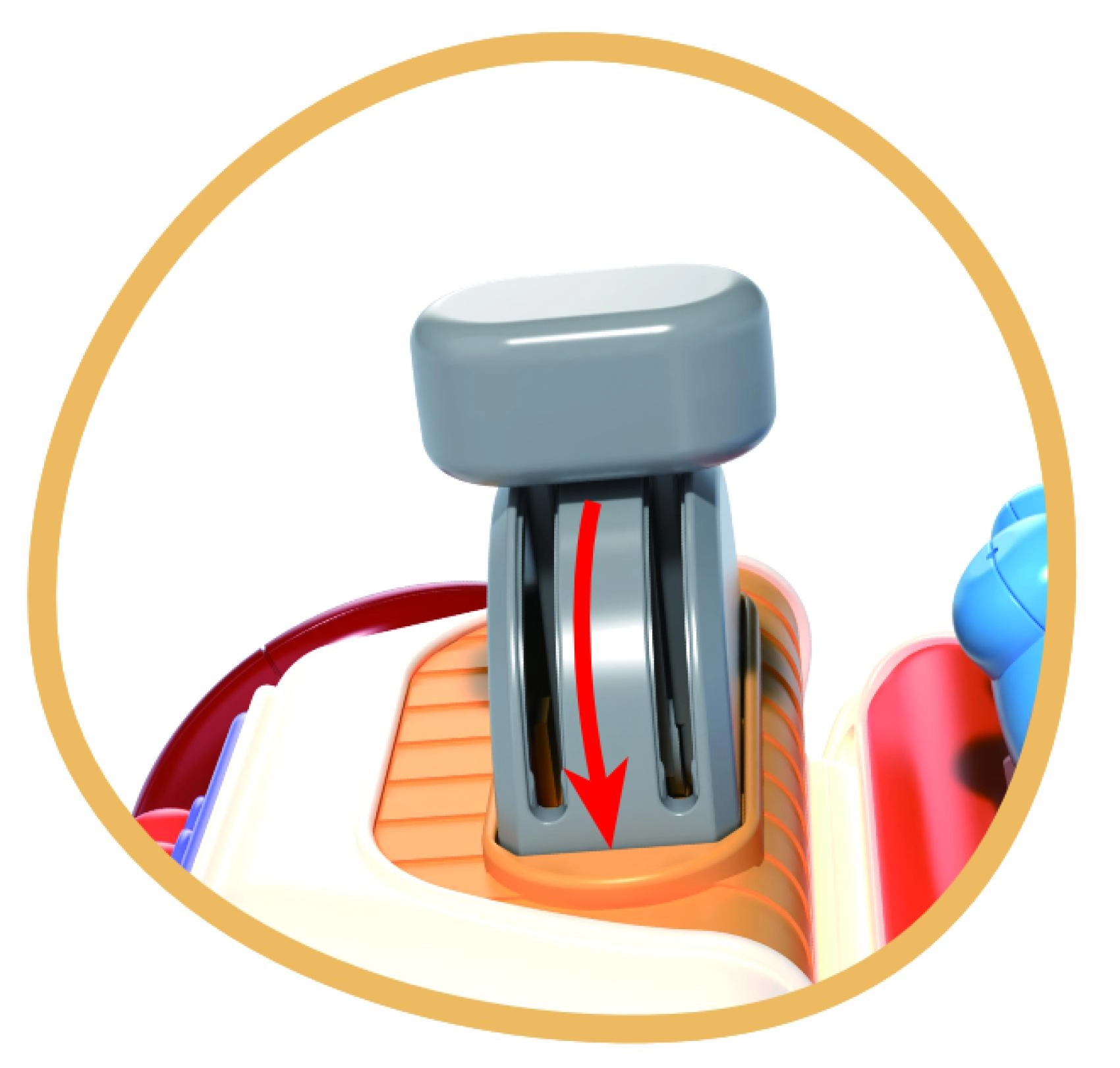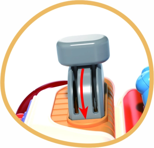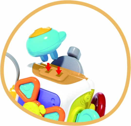 Verschiedene mechanische Elemente laden zum Drücken und Schieben ein. Das Kind trainiert die Finger, den Griff sowie das Verständnis von Ursache und Wirkung.