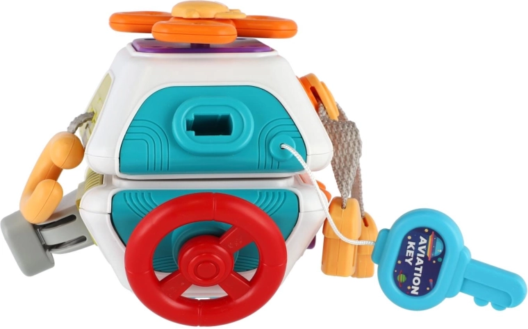 Er fördert die Feinmotorik, das logische Denken und das Verständnis von Ursache und Wirkung. Kinder üben ihren Griff, stärken die Koordination und haben gleichzeitig Spaß an den leuchtenden Farben und beweglichen Teilen wie dem Propeller oder den drehbaren Rädern. Die Zertifizierung in der Tschechischen Republik ist ein Garant für Sicherheit und hochwertige Verarbeitung.