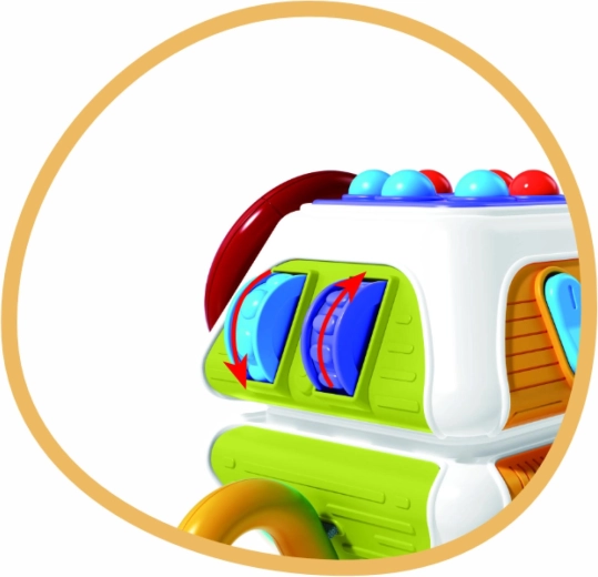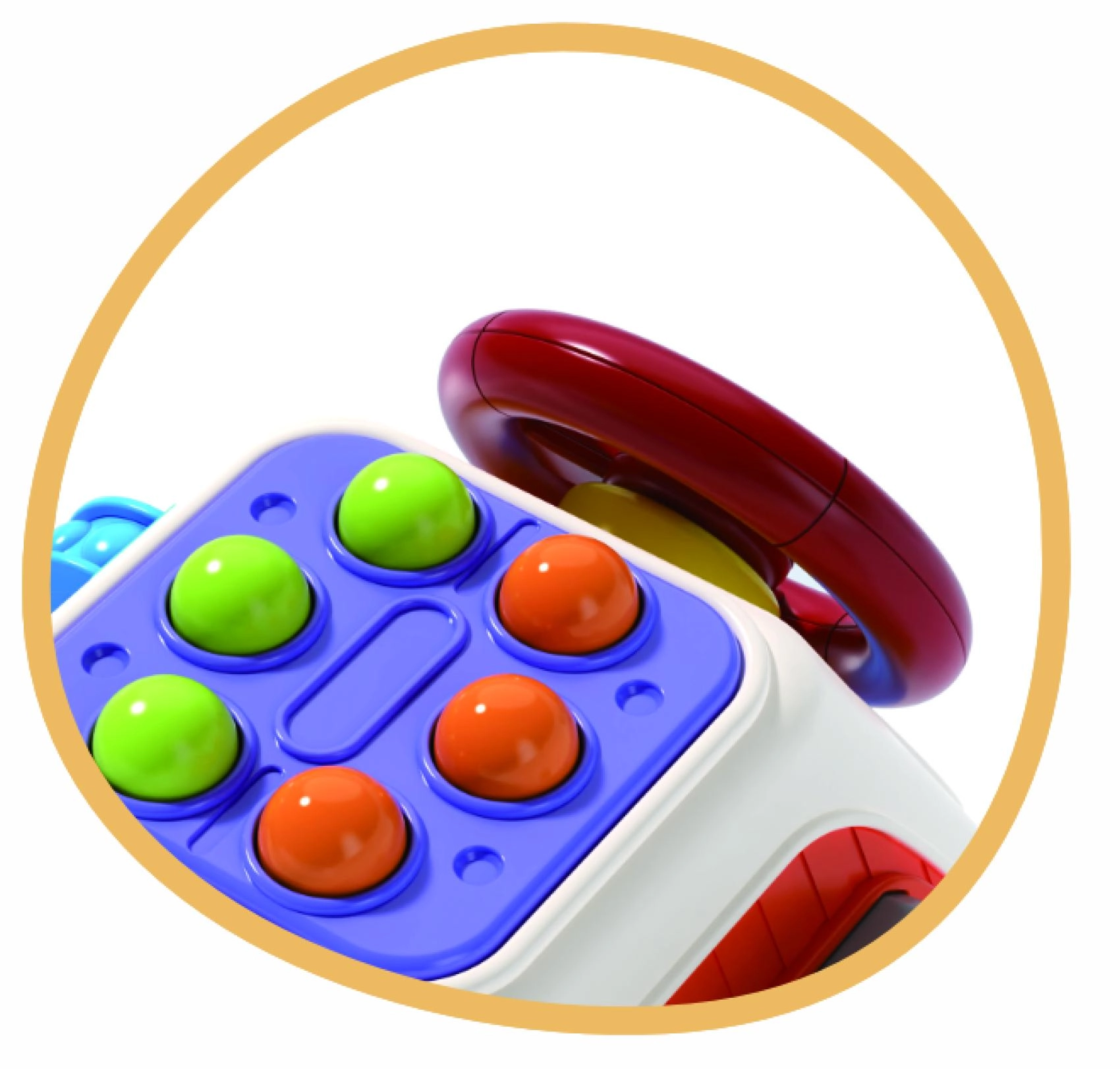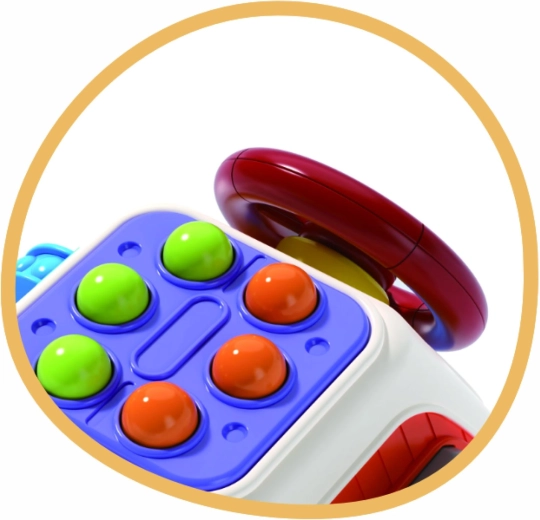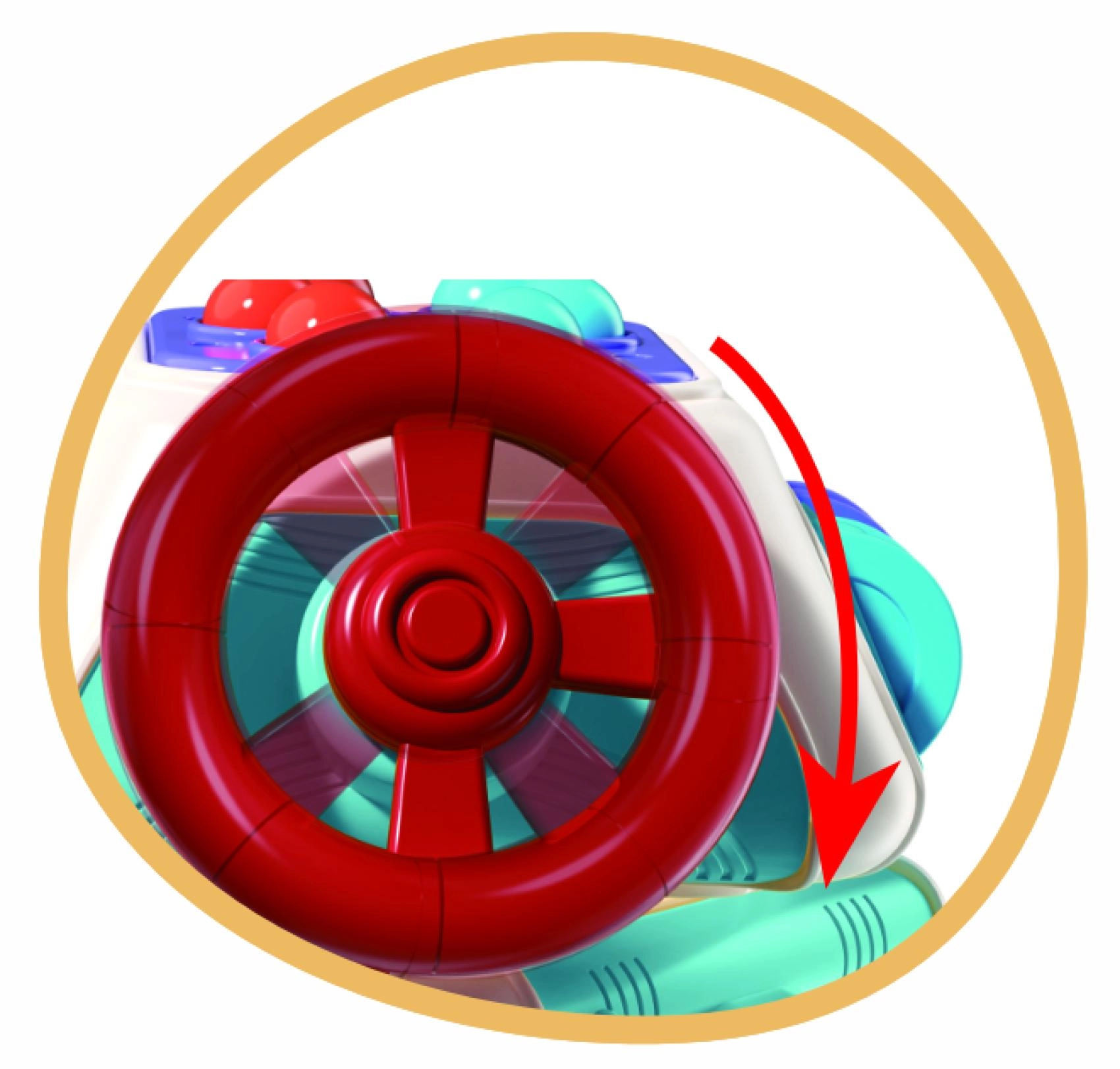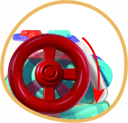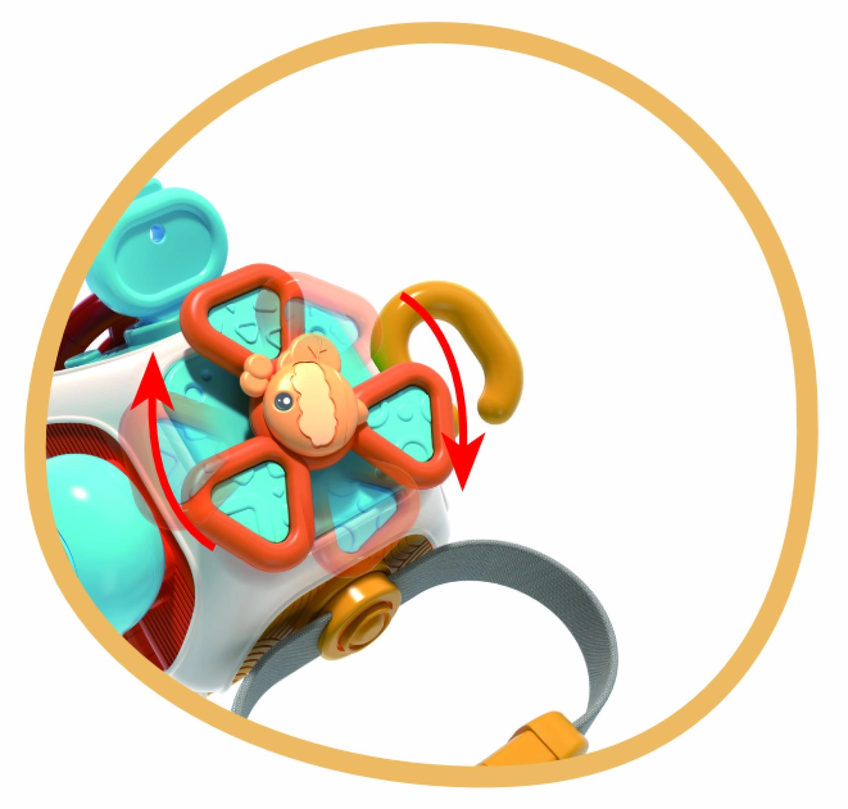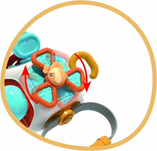 Der obere Propeller und drehbare Räder motivieren das Kind zum Greifen und zu fließenden Bewegungen und fördern so auf natürliche Weise die Hand-Auge-Koordination.
