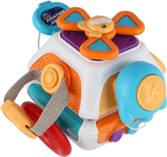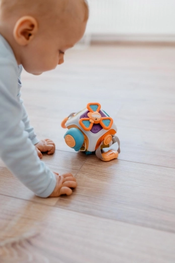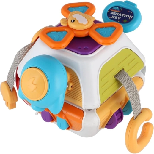 Dieser multifunktionale Aktivitätswürfel wird zum Lieblingsbegleiter Ihres Babys. Jede Seite bietet eine neue Herausforderung – Knöpfe, Schalter, Schieber, Räder und strukturierte Elemente für die sensorische Entwicklung. Dank der kompakten Maße von 11 × 12 cm und abgerundeten Kanten ist er ideal für kleine Hände und für unterwegs.
