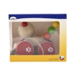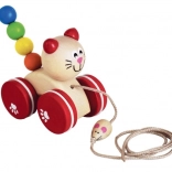 Dieses Holz-Ziehspielzeug in Form einer Katze begeistert jedes kleine Kind, das bereits die Welt der ersten Schritte entdeckt. Mit der Katze fährt eine Maus am Schnur entlang, was einen zusätzlichen Spaßfaktor bietet.