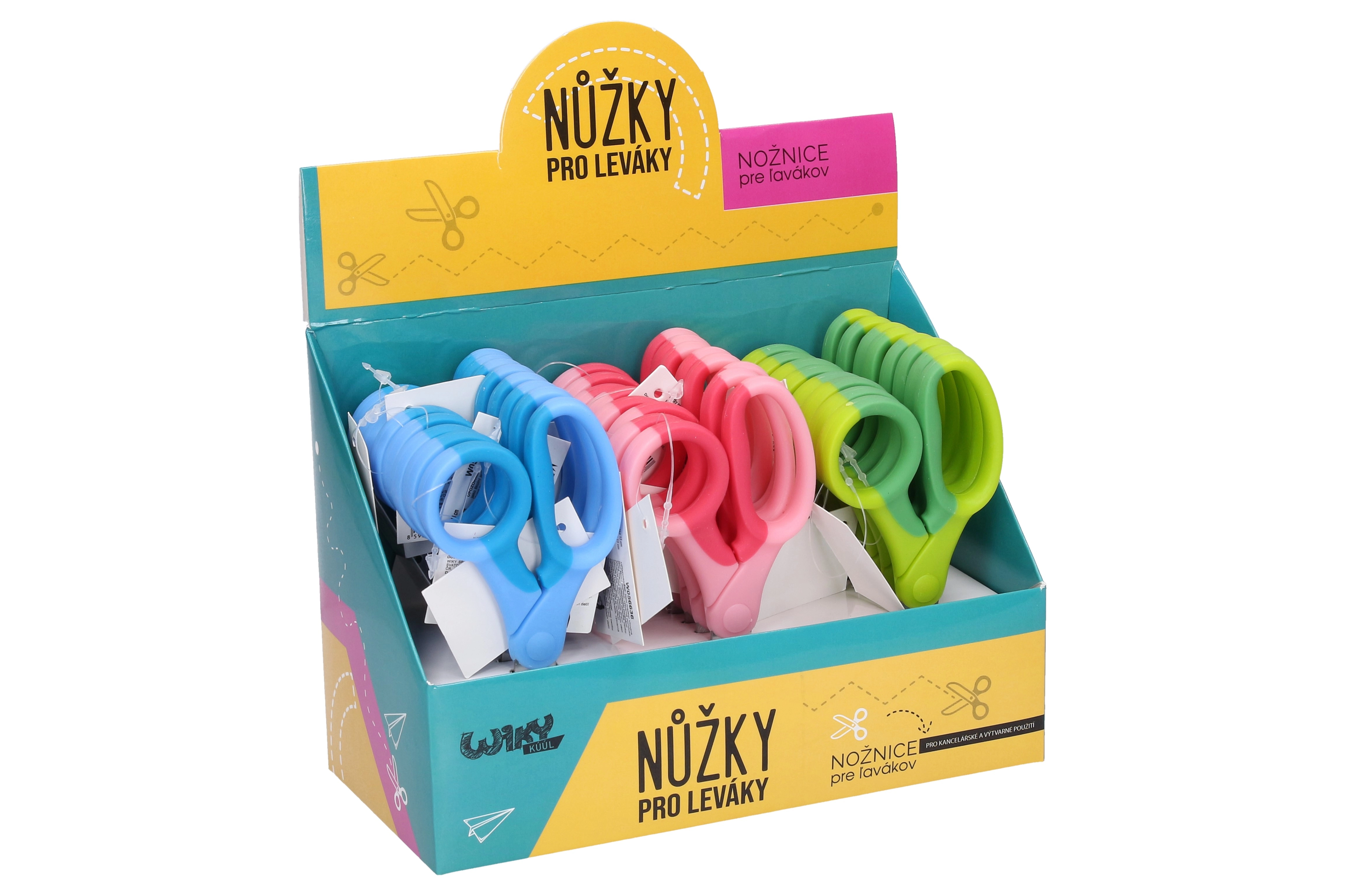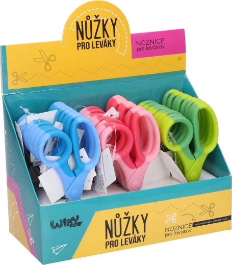 Kompakte und bequeme Linkshänder-Schere mit 13-cm-Klinge für präzise Schnitte und sicheren Griff. Der ergonomische, zweifarbige Griff ist für die linke Hand optimiert und sorgt für Komfort zu Hause, in der Schule und im Büro. Erhältlich in 3 Farbvarianten: Blau, Rosa und Grün.