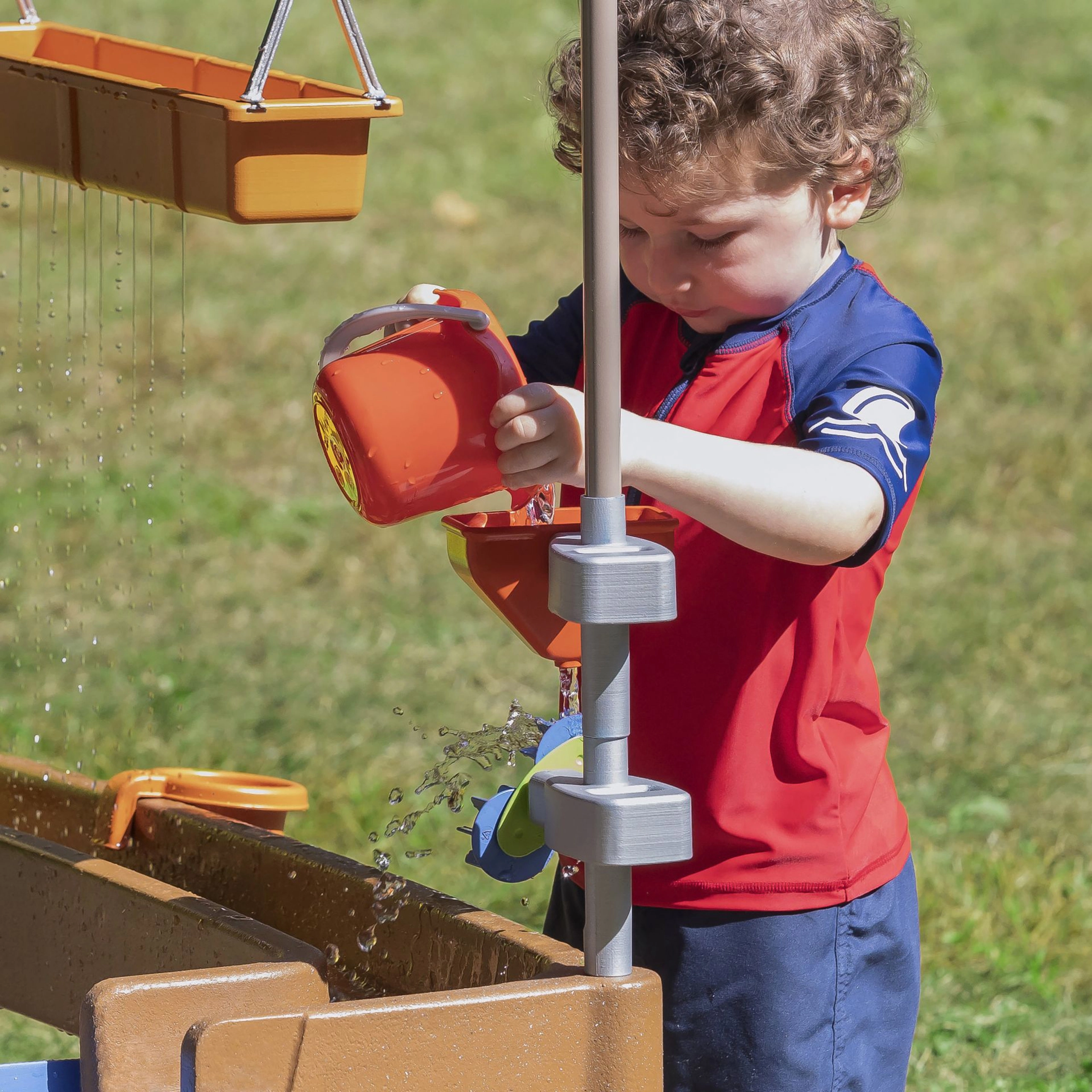 Wasser setzt Räder, Trichter und ein spektakuläres Regentablett in Bewegung – fördert die Sinneswahrnehmung und STEM-Lernen.