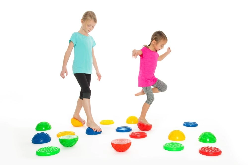 Die halbkugelige Form und der sichere Grip fördern ein sicheres Verlagern des Gewichts, Einbeinstand sowie Koordinationsübungen für Kinder und Erwachsene.