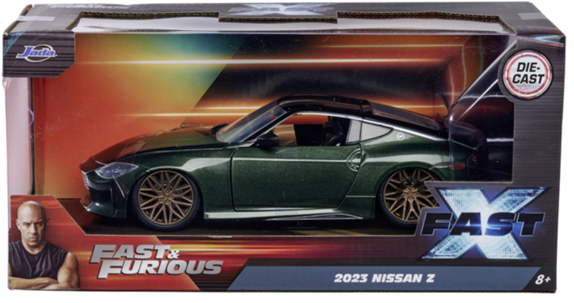 Entdecken Sie das detailreich gestaltete Modell des Nissan Z (2023), das im Film Fast X aus der Reihe Fast & Furious zu sehen ist. Das Modell von Jada Toys bietet eine Kombination aus realistischen Proportionen, hochwertigen Materialien und attraktivem Film-Look – perfekt zum Ausstellen im Regal oder als Geschenk für Fans actionreicher Autofilme.