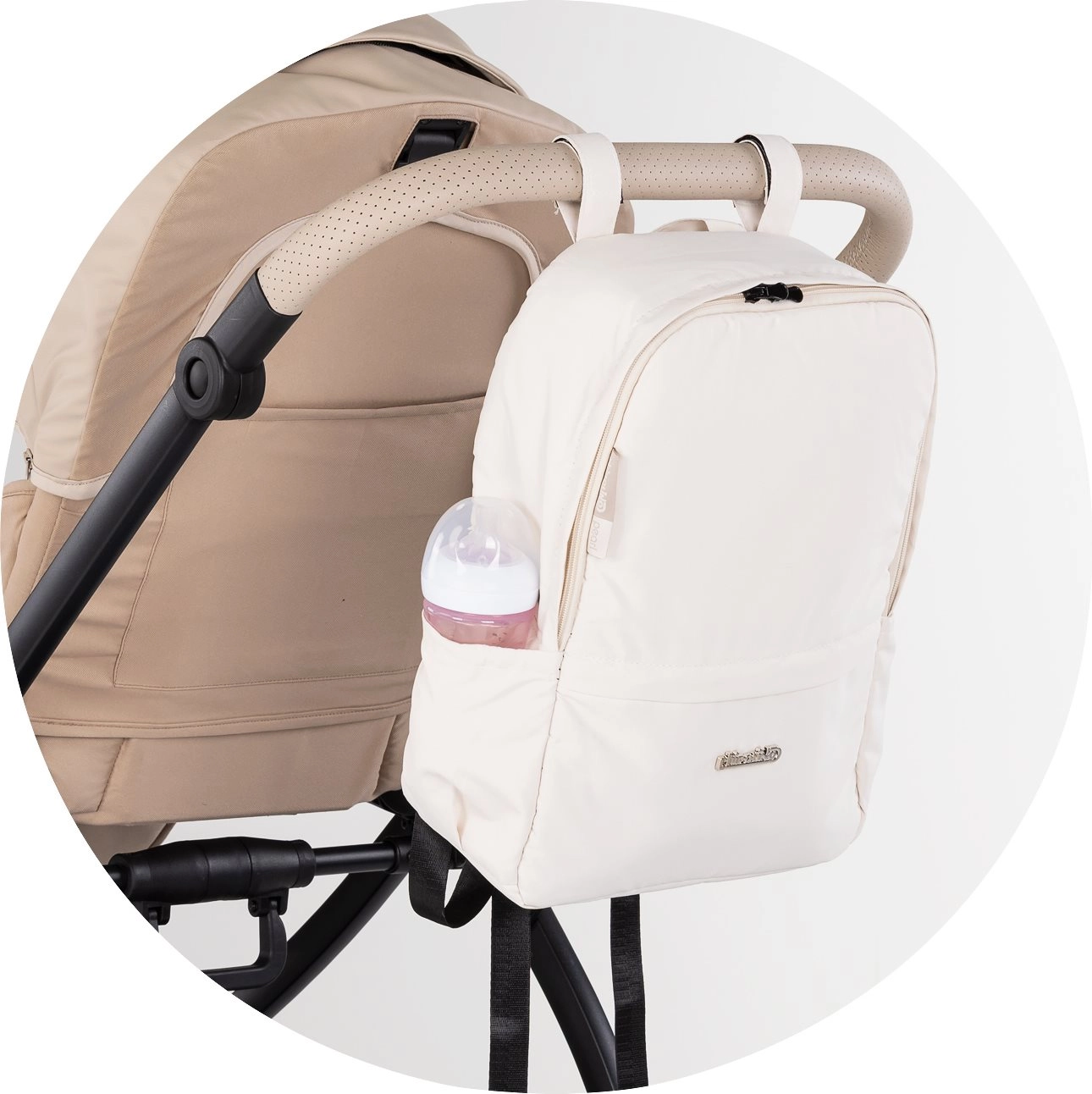 Für ganztägigen Komfort verfügt der Rucksack über gepolsterte, verstellbare Schultergurte, einen praktischen oberen Tragegriff und einen sicheren Reißverschluss. Strapazierfähiges, leicht zu reinigendes Material hält dem täglichen Einsatz und Reisen stand. Das elegante Unisex-Design passt zu jedem Kinderwagen und Outfit.