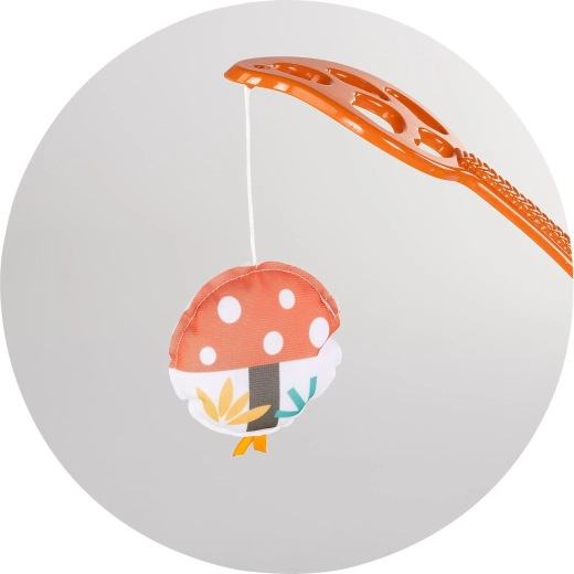 Unterhaltsame Melodien, Lichteffekte und Lautstärkeregelung fördern die sensorische Entwicklung und Kreativität. Betrieb mit 2× AA-Batterien (nicht enthalten).
