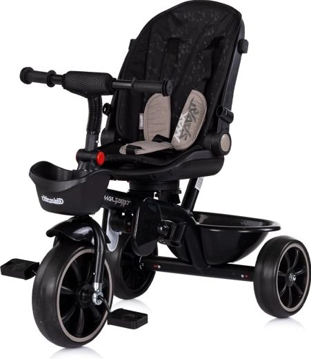 Für maximalen Komfort ist das Dreirad mit weicher Textilpolsterung, Sicherheitsgurt, klappbaren Fußstützen und geräumigen Körben vorne und hinten ausgestattet. Der verstellbare Elterngriff in zwei Höhen ermöglicht sicheres Führen und Richtungskontrolle. Das klappbare Verdeck mit Sonnenschutz schützt vor Sonne und der Getränkehalter kann in zwei Positionen befestigt werden.