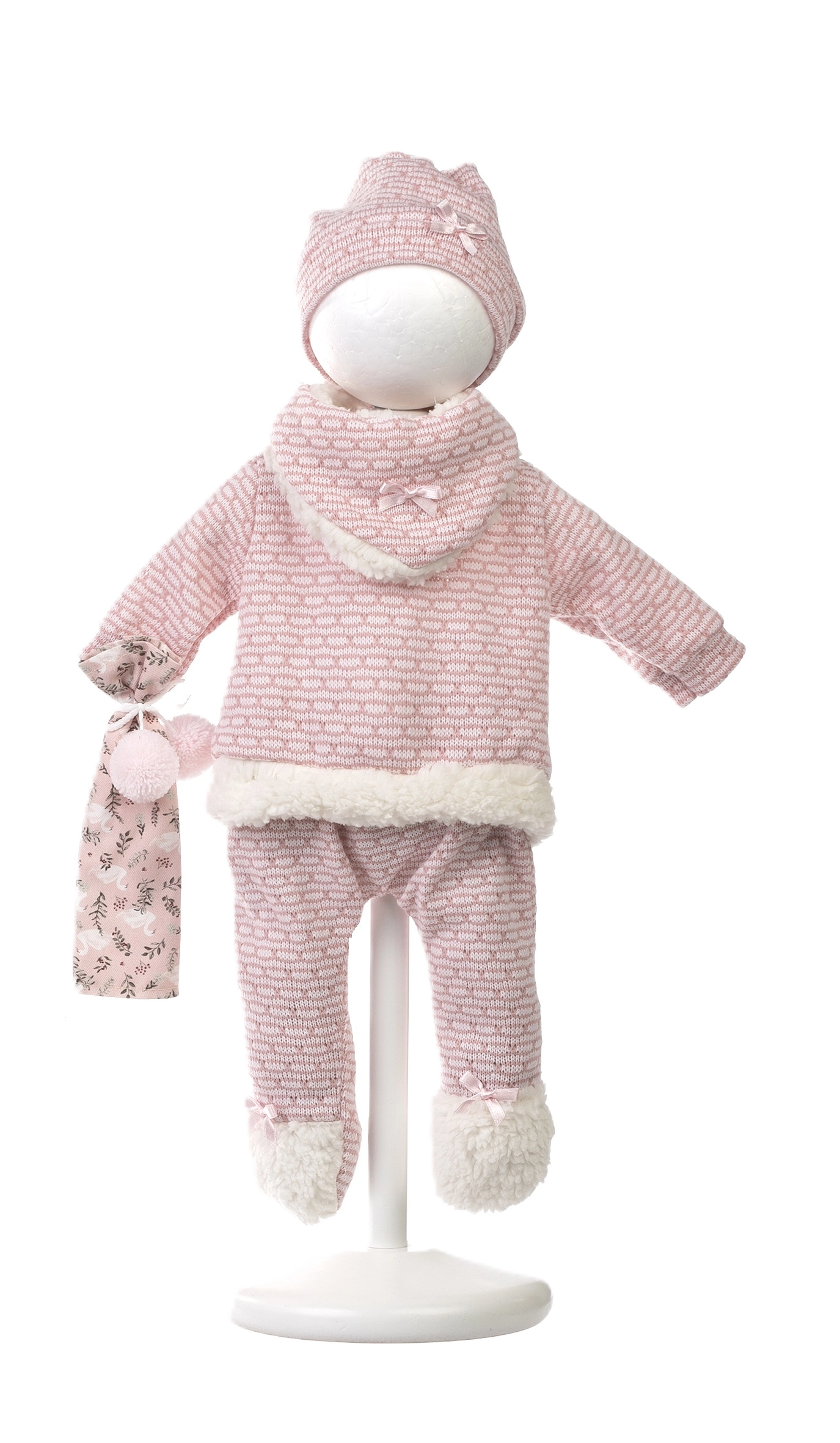 Das Set enthält ein wärmendes Oberteil, Hose, Mütze und Schühchen mit weichen Säumen – ideal zum winterlichen Umziehen der Puppen und für entspanntes Spielen.