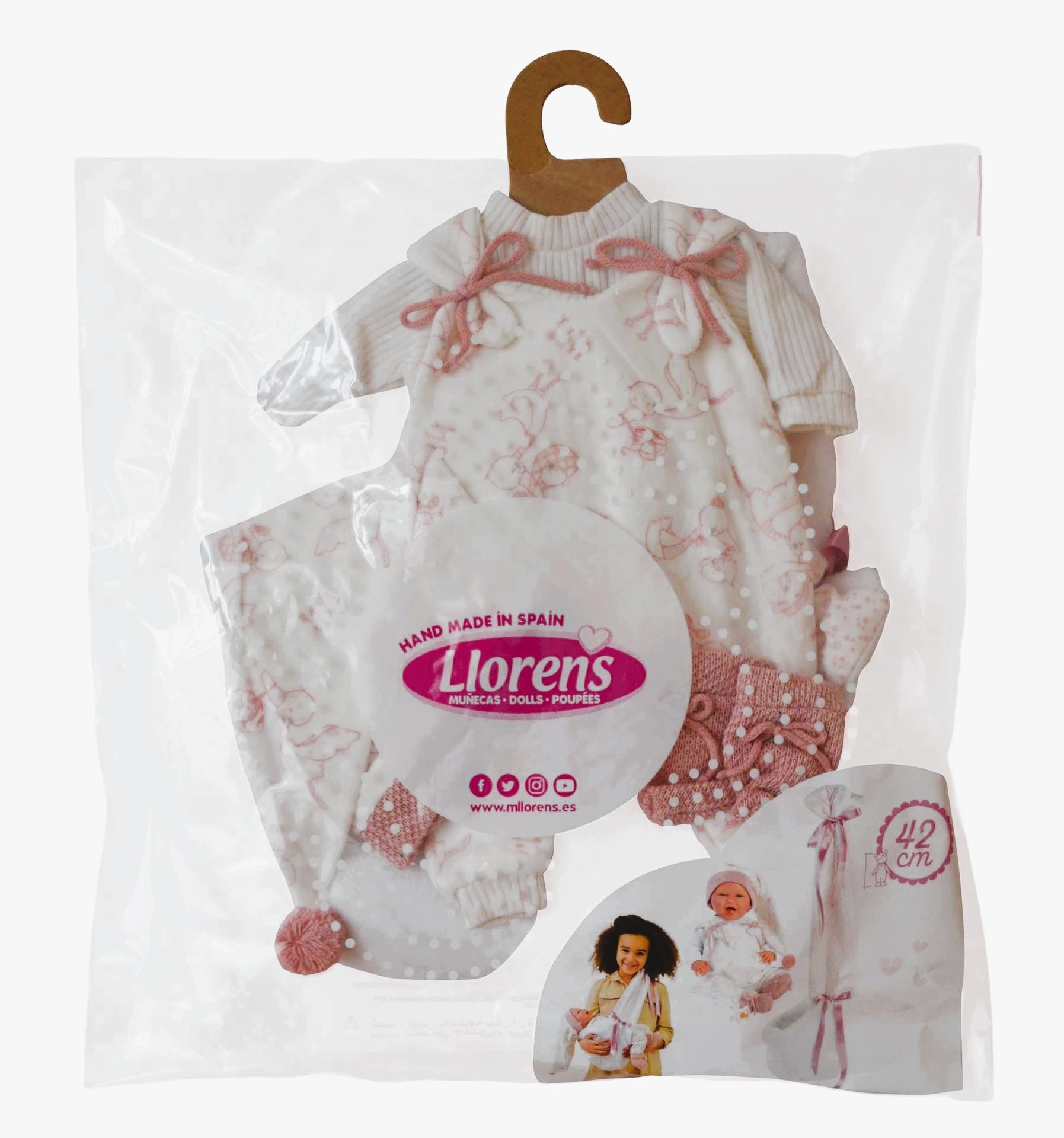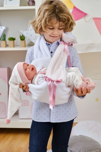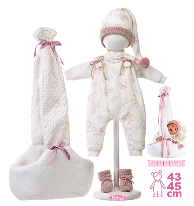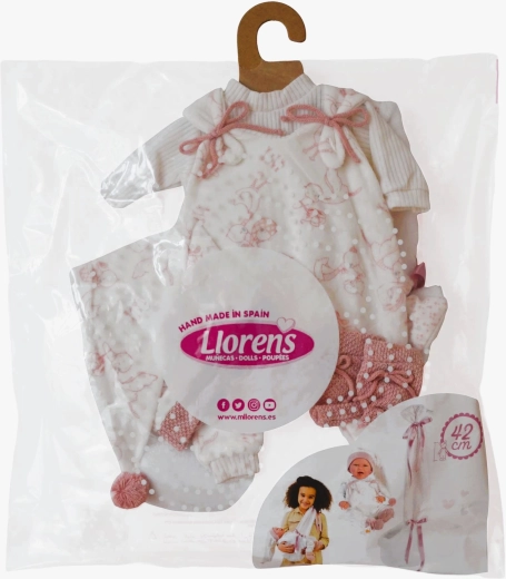 Das Set wird in Spanien handgefertigt und ist für Llorens NEW BORN Puppen in 40–42 cm konzipiert. Dank der hochwertigen Verarbeitung und Details – wie Schleifen, gerippte Säume oder gestrickte Schühchen – wirken die Outfits realistisch und elegant. Hervorragend zur Förderung von Feinmotorik, Empathie und Fantasie.