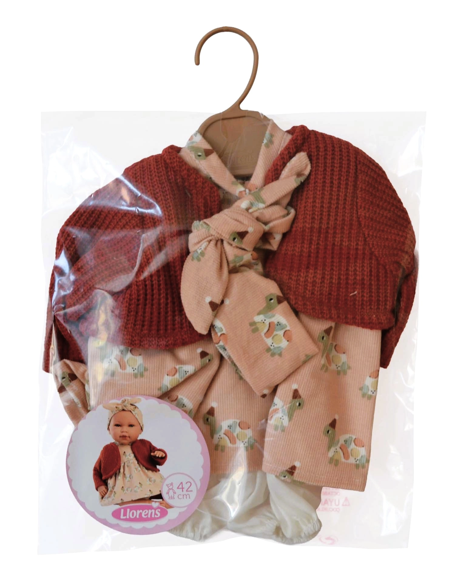 Gönnen Sie Ihrer Puppe ein neues Outfit mit dem 4-teiligen Set von Llorens, speziell entworfen für New Born Puppen in der Größe 40–42 cm. Jedes Teil ist sorgfältig und handgefertigt in Spanien, was präzise Verarbeitung, einfaches Anziehen und lange Lebensdauer garantiert.