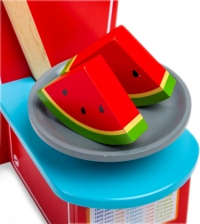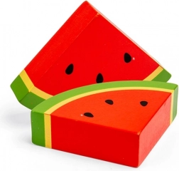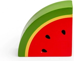 Lebendige Farben und Details der Melone motivieren Kinder zum Greifen und zu Rollenspielen in Küche oder Laden.