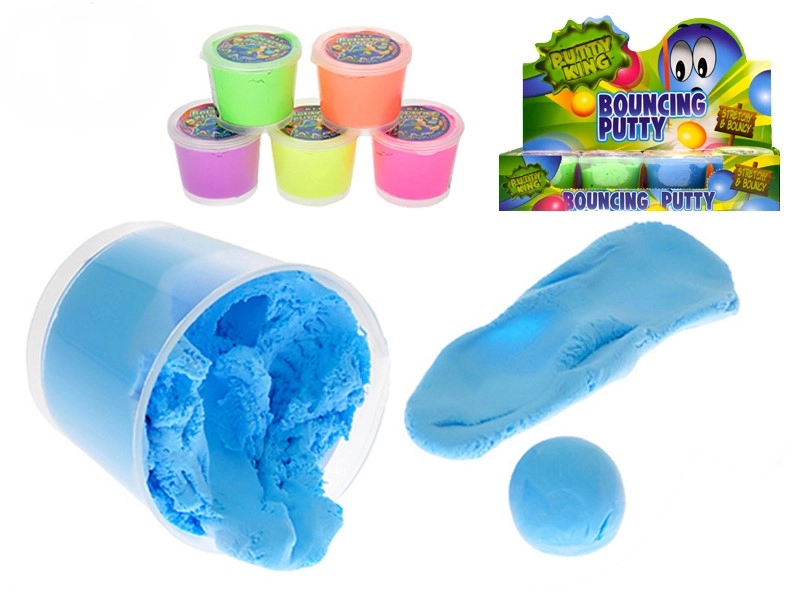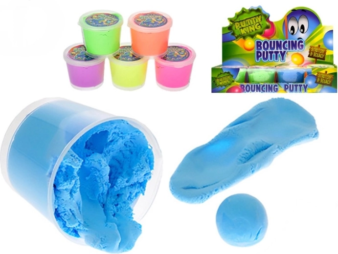 Die Springknete Putty King ist der ideale Begleiter für Spaß zu Hause und unterwegs. Kneten, zu einer Kugel formen und energische Sprünge wie ein Flummi genießen. Im Becher finden Sie 35 g Knete in einer von 6 attraktiven Farben.