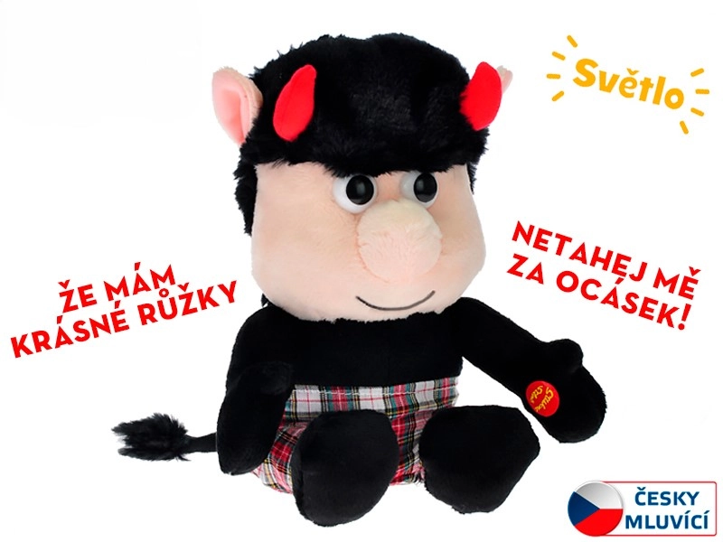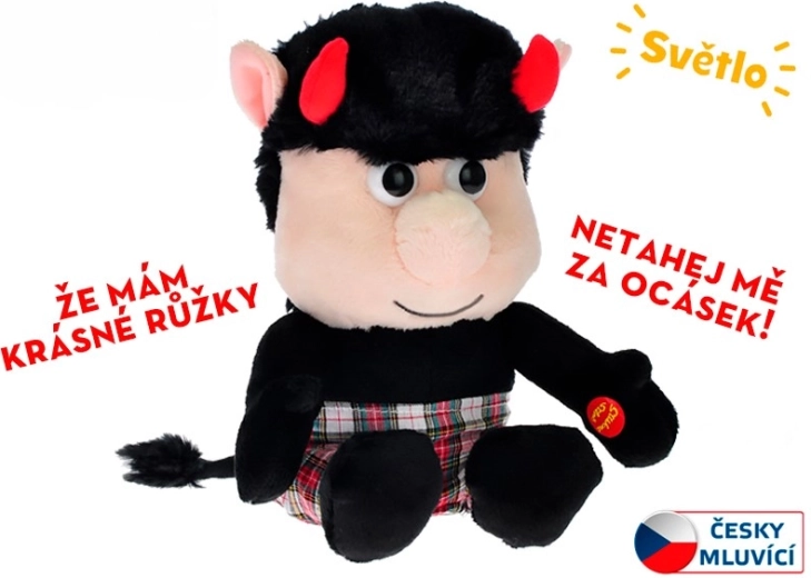 Begrüßen Sie im Kinderzimmer einen fröhlichen Begleiter – das Teufelchen namens Rudla. Dieses weiche Plüschtier spricht nach dem Drücken der Hand tschechisch und seine Hörnchen blinken dabei lustig. Dank der kompakten Größe von 20 cm ist es perfekt zum Spielen zu Hause und für unterwegs.