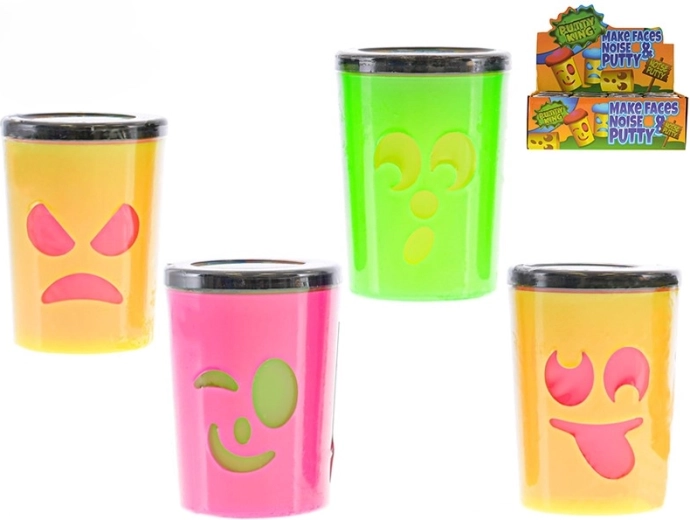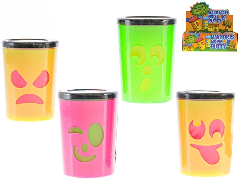 Entdecken Sie den farbigen Putty King Schleim mit Gesicht – das perfekte Antistress-Spielzeug für Kinder und Erwachsene. Im Becher mit Emoji-Gesichtsausschnitt fließt der Schleim beim Drücken durch die Öffnungen und sorgt dank lustiger pupsender Geräusche für jede Menge Lacher. Der Schleim ist weich, elastisch und lässt sich hervorragend dehnen, quetschen und formen.