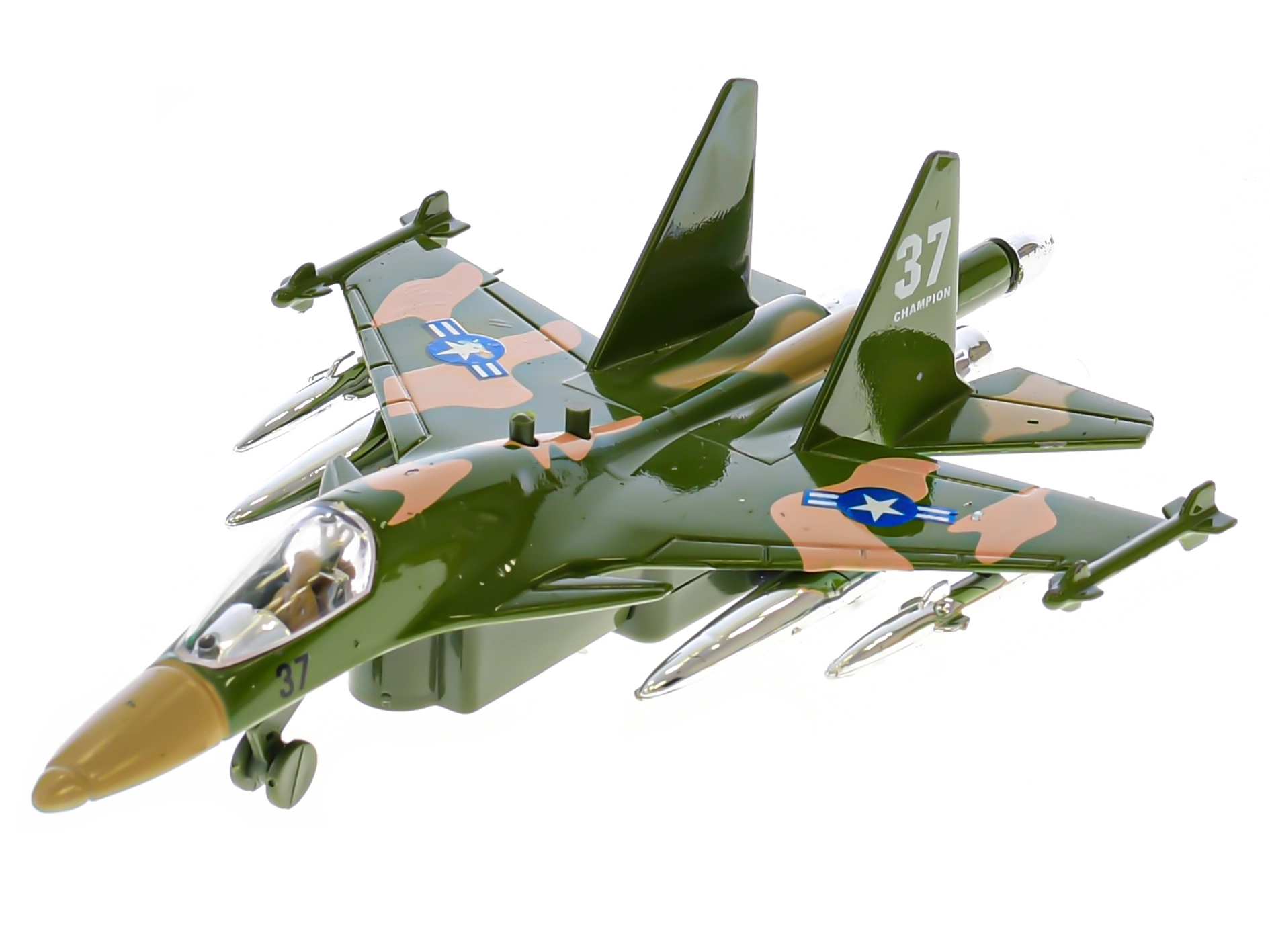 Dieses detailreich gestaltete Militärflugzeug ist ideal für kleine Luftfahrtfans. Einfach zurückziehen, loslassen und dank des Rückzugantriebs fährt es wie eine echte Maschine los. Durch Drücken der Taste blinkt das Flugzeug und spielt den Startsound ab, was das Spielerlebnis noch intensiver macht.
