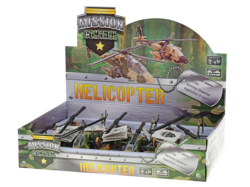 Entdecken Sie die actiongeladene Welt mit dem Mission-Control-Hubschrauber, der jeden kleinen Fan von Militärtechnik begeistern wird. Die Metallausführung sorgt für höhere Widerstandsfähigkeit und eine lange Lebensdauer, während Licht- und Soundfunktionen realistische Spielerlebnisse bieten. Dank des Rückziehantriebs fährt der Hubschrauber nach dem Zurückziehen ganz leicht los – für viel Spaß ohne komplizierte Bedienung.